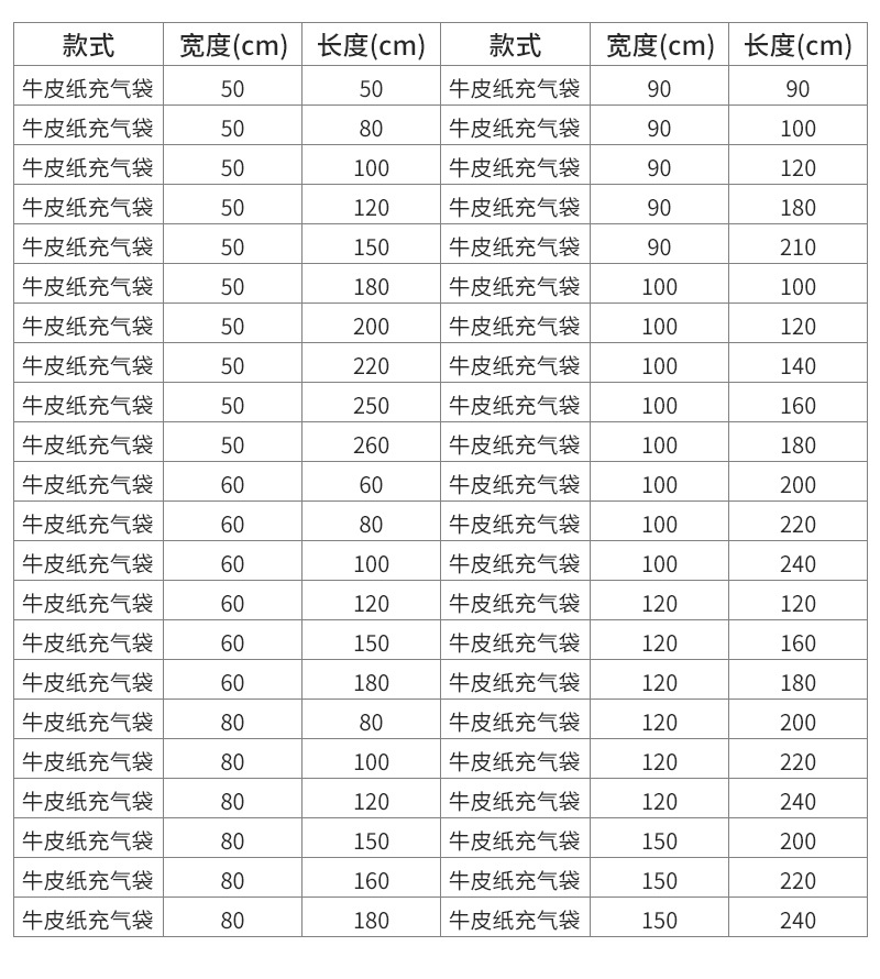 规格型号 50*50;牛皮纸,50*80;牛皮纸,50*100;牛皮纸,50*120;牛皮纸,50*150;牛皮纸,50*180;牛皮纸,50*200;牛皮纸,50*220;牛皮纸,50*250;牛皮纸,50*260;牛皮纸,60*60;牛皮纸,60*80;牛皮纸,60*100;牛皮纸,60*120;牛皮纸,60*150;牛皮纸,60*180;牛皮纸,80*80;牛皮纸,80*100;牛皮纸,80*120;牛皮纸,80*150;牛皮纸,80*160;牛皮纸,80*180;牛皮纸,90*90;牛皮纸,90*100;牛皮纸,90*120;牛皮纸,90*180;牛皮纸,90*210;牛皮纸,100*100;牛皮纸,100*120;牛皮纸,100*140;牛皮纸,100*160;牛皮纸,100*180;牛皮纸,100*200;牛皮纸,100*220;牛皮纸,100*240;牛皮纸,120*120;牛皮纸,120*160;牛皮纸,120*180;牛皮纸,120*200;牛皮纸,120*220;牛皮纸,120*240;牛皮纸,150*220;牛皮纸,150*240;牛皮纸