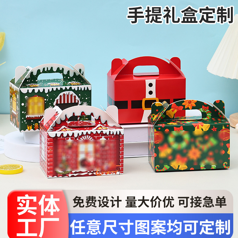 圣诞节手提礼品盒定制蛋糕烘焙牛角盒定做diy圣诞苹果包装盒空盒