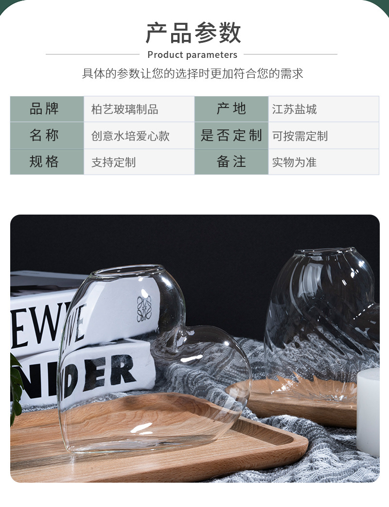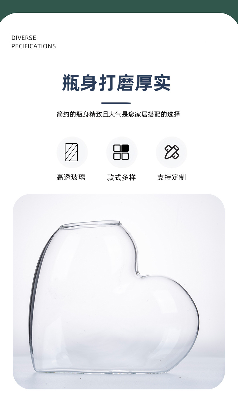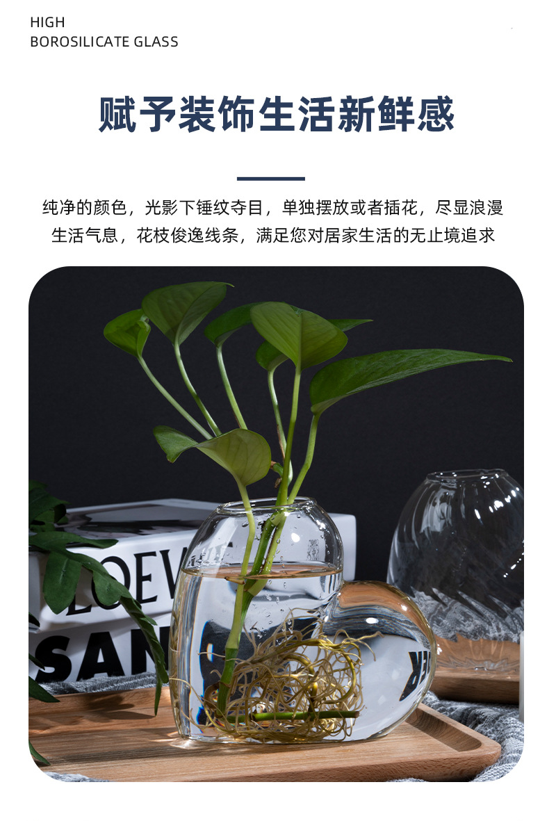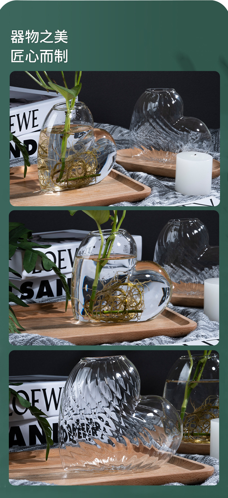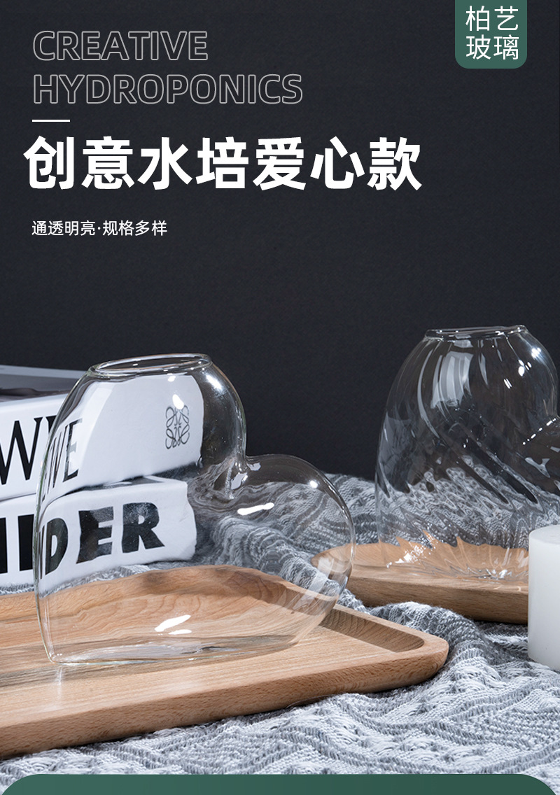 创意花瓶水族玻璃水培爱心款鱼缸花盆绿萝植物透明水培花办公室