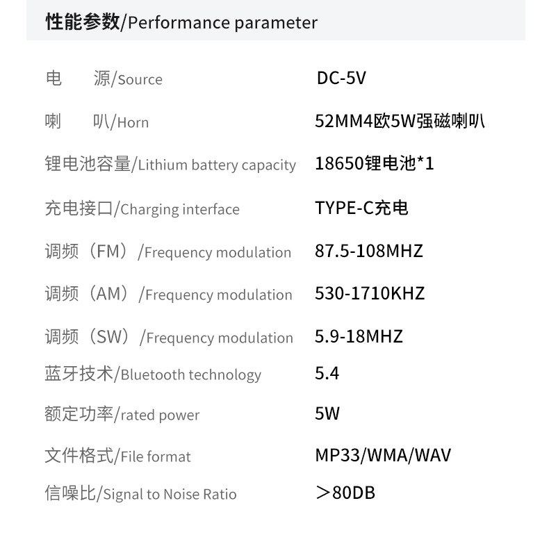 支持格式 U盘 TF BT