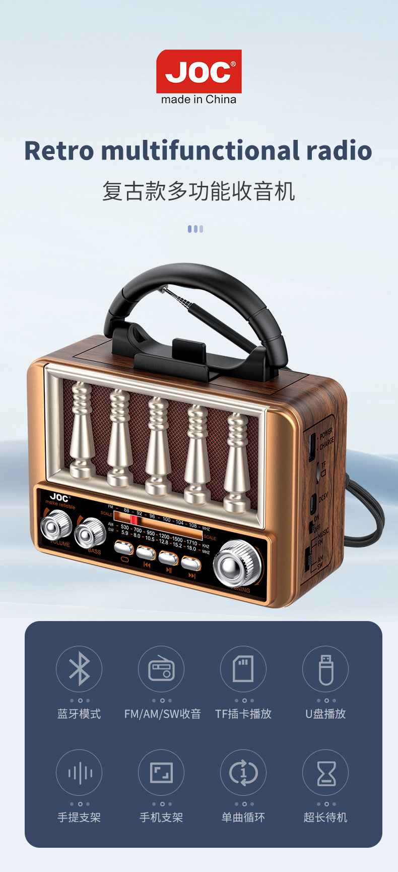 跨境新款多功能收音机复古蓝牙收音机便携式插卡收音机厂家现货