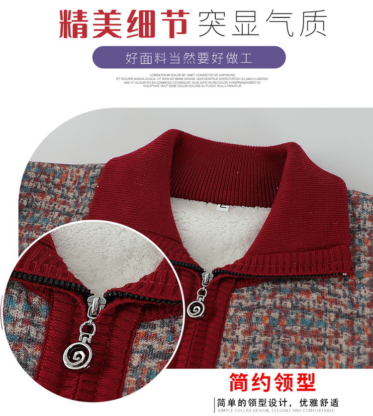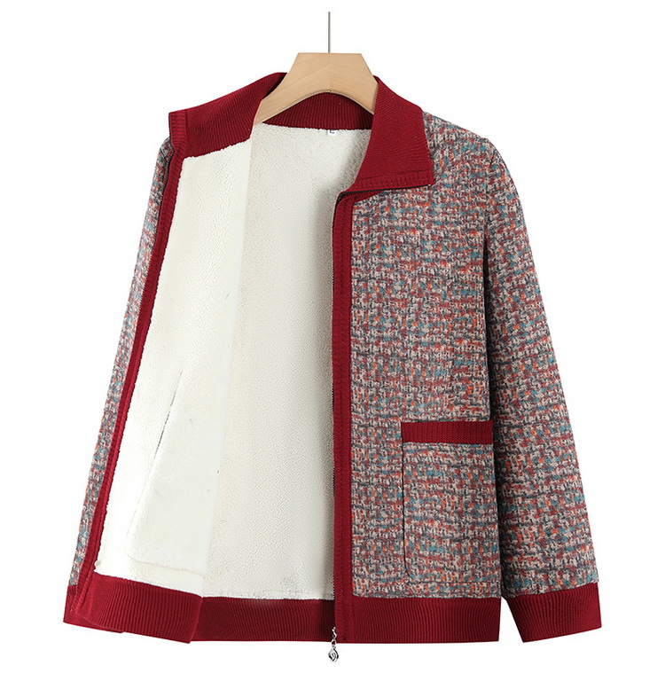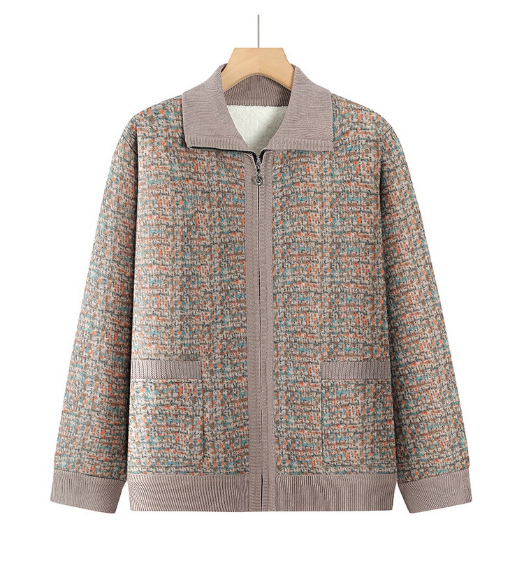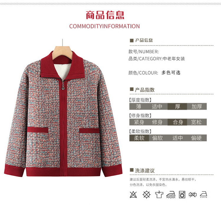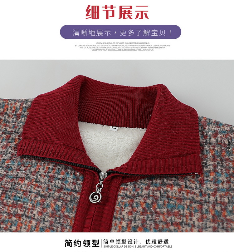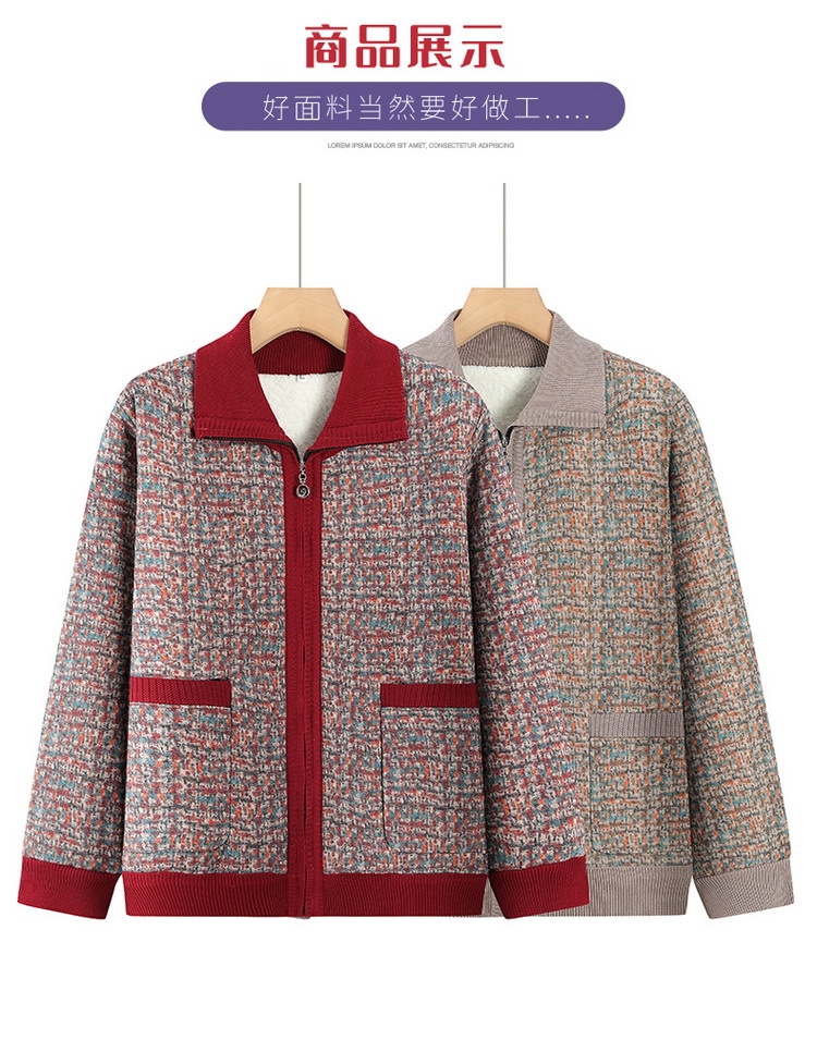 中老年人秋冬保暖上衣女奶奶装加绒加厚毛衣妈妈装针织衫开衫外套