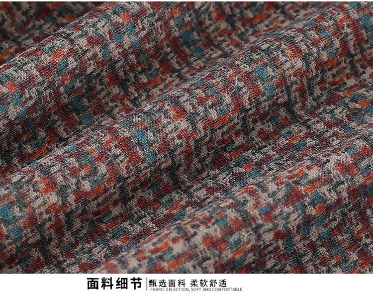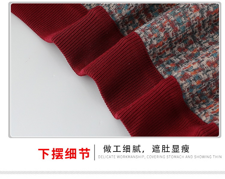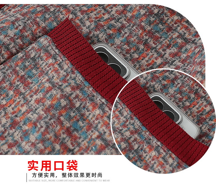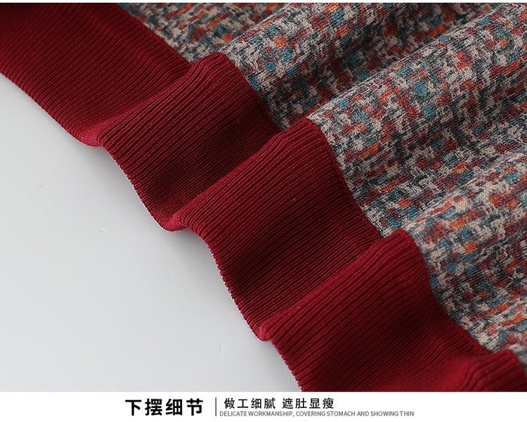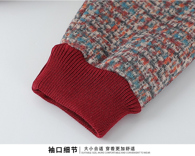 中高年のお母さんの秋冬ニットのカーディガンのおばあさんのセーターの丸首のプリントのゆったりとしたカジュアルで快適な女性のセーター