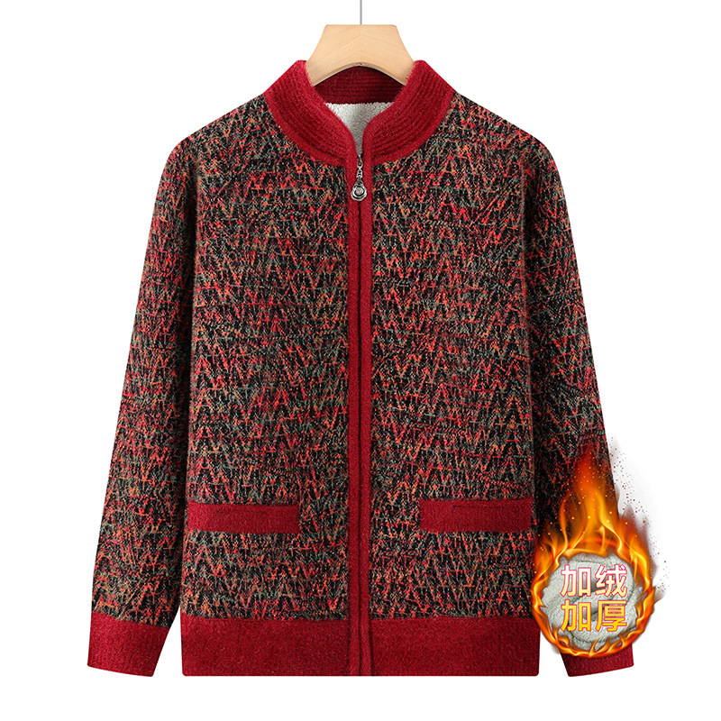 中老年秋冬装新款妈妈装加绒加厚针织衫外套奶奶装保暖开衫毛衣女