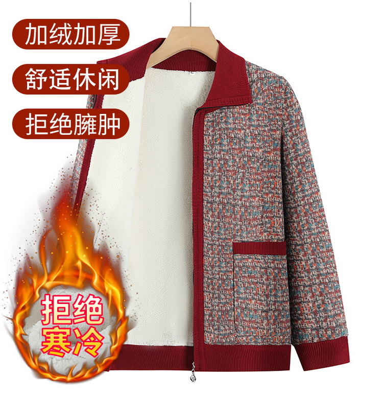 妈妈秋冬装新款加绒加厚外套中老年女装毛衣奶奶装保暖针织衫上衣