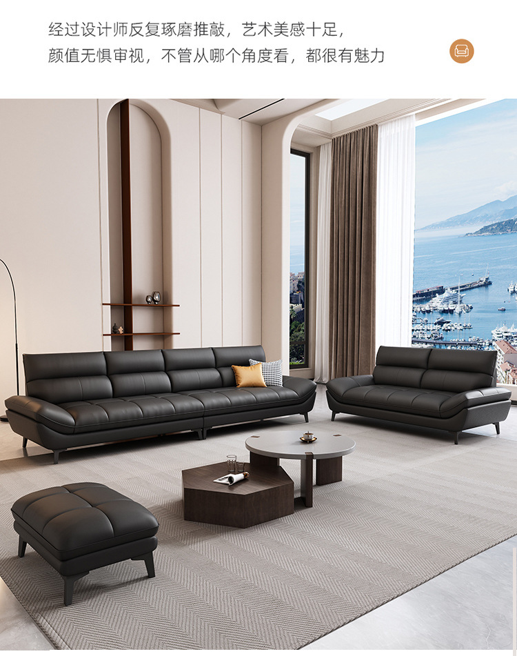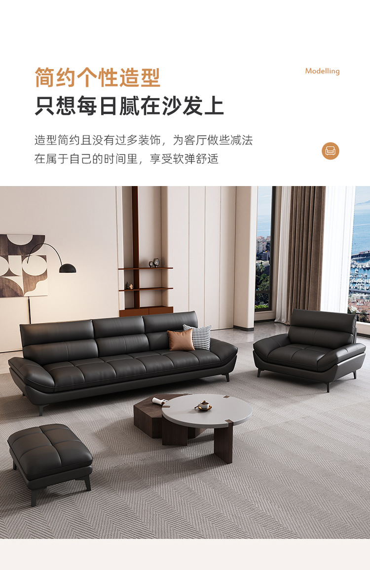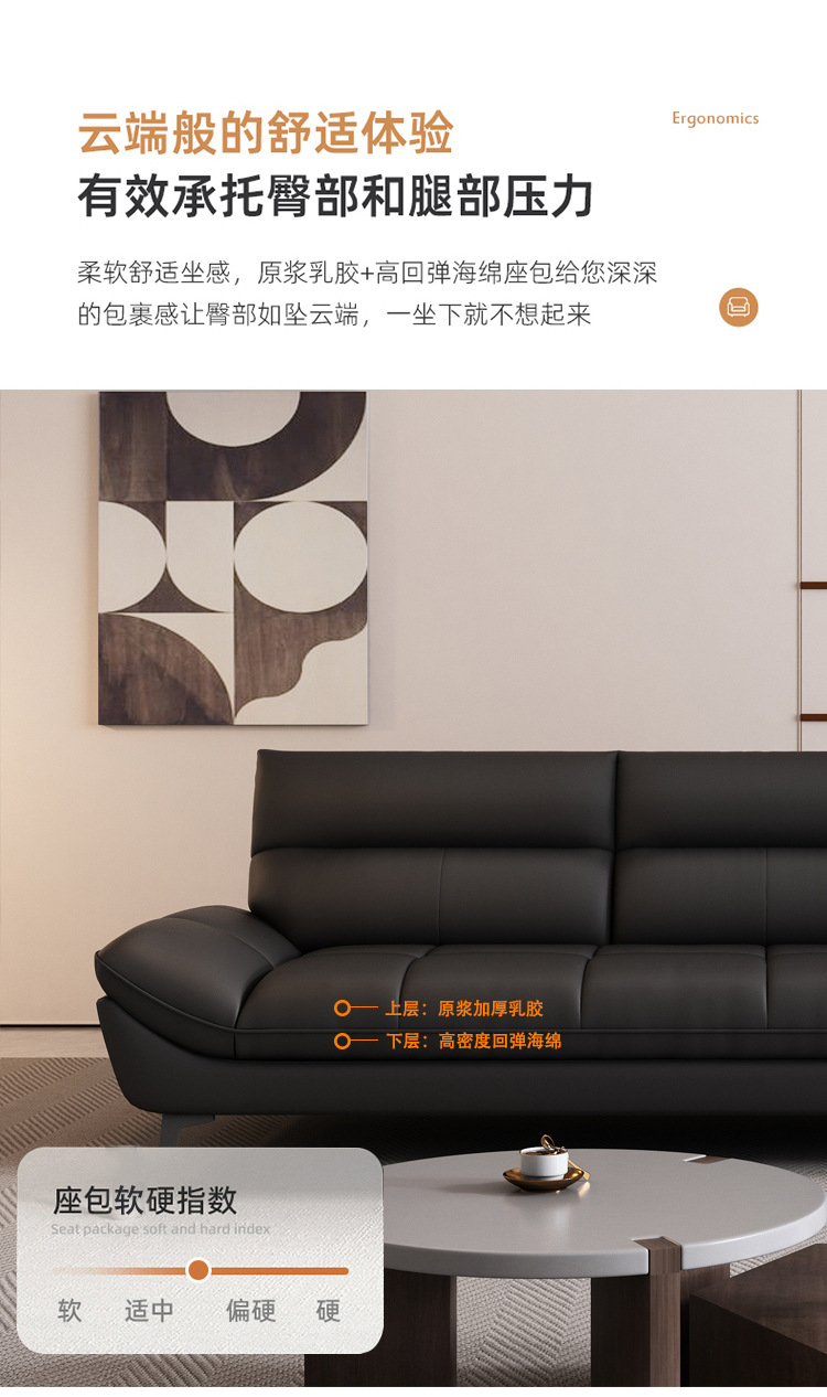 现代简约会客接待办公室沙发 头层牛皮沙发老板经理午休办公沙发