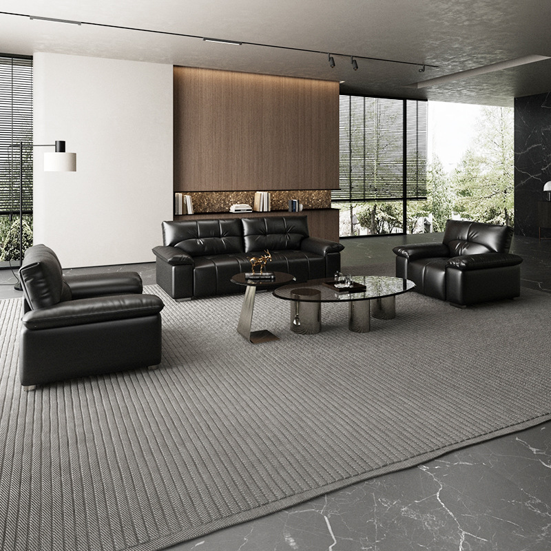 シンプルな高級本革オフィスソファとコーヒーテーブルの組み合わせボスビジネスレセプションと商談オフィスソファ