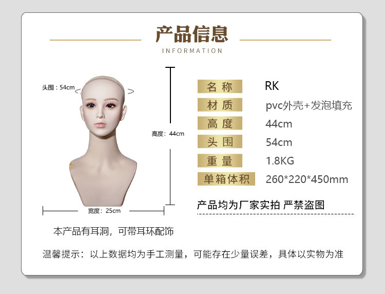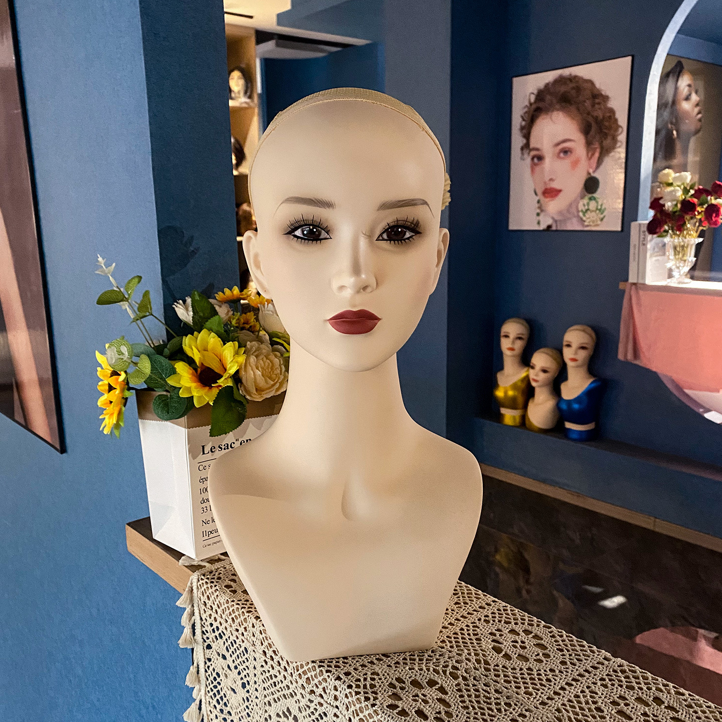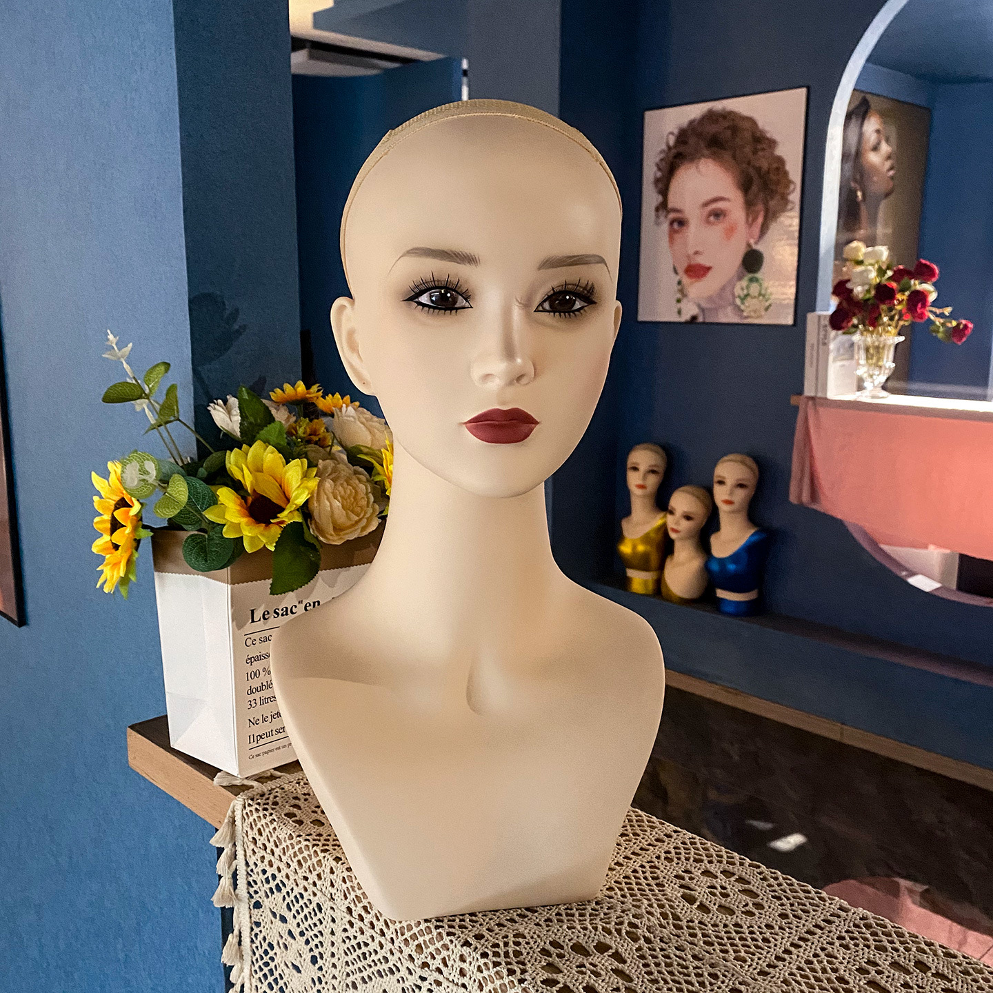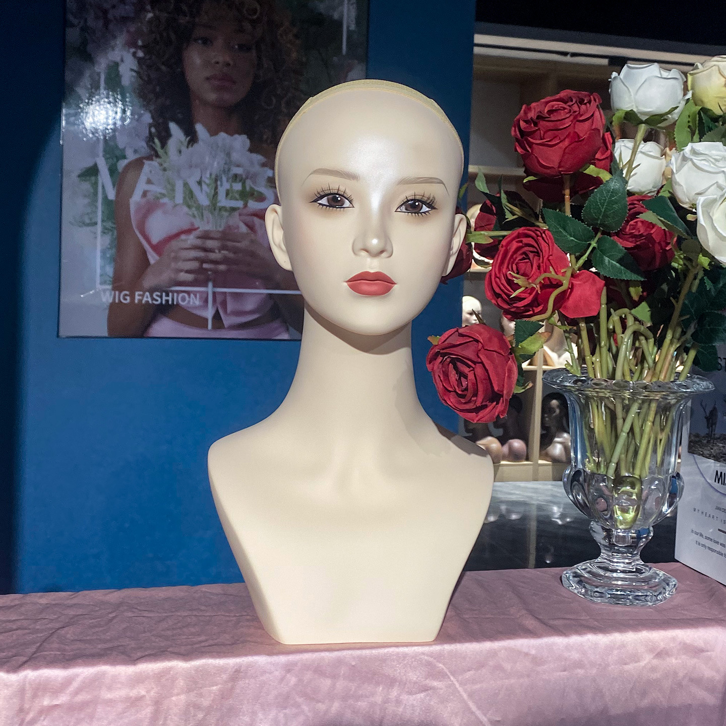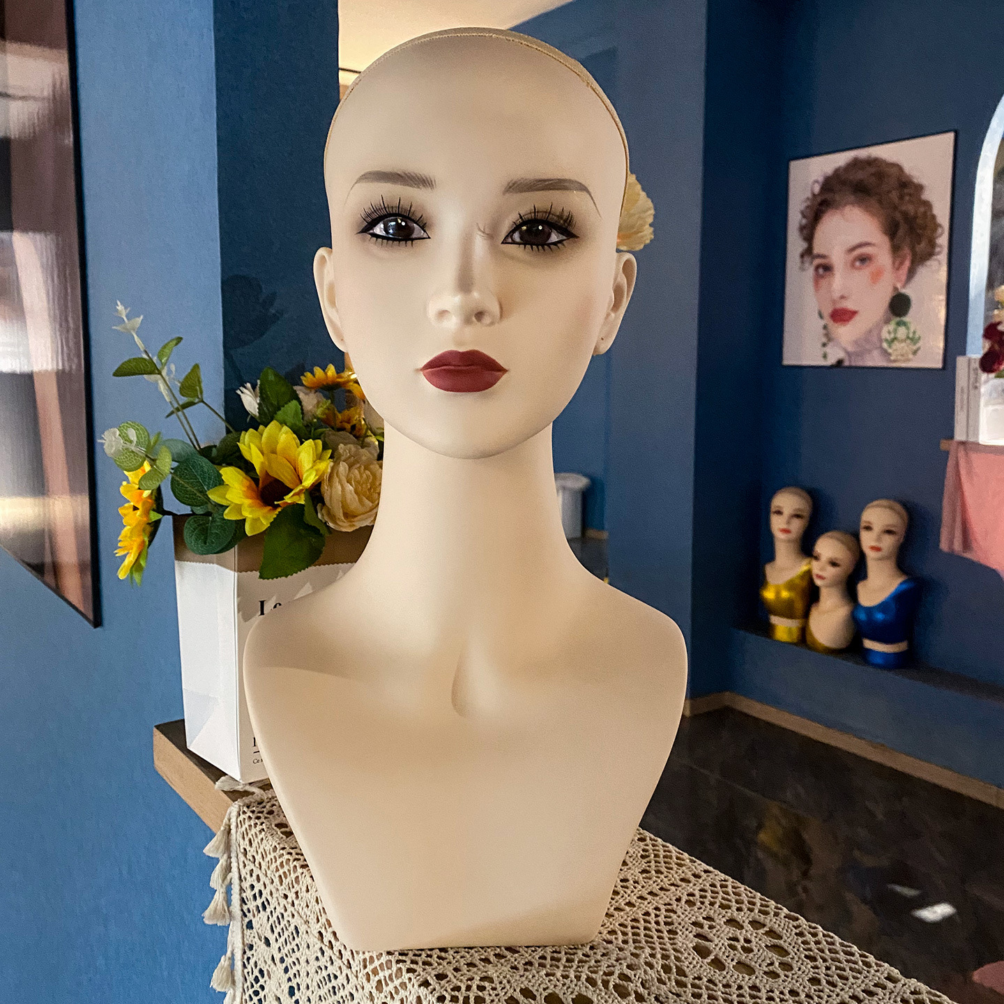 新款cos化妆美女模特头 肤色假发头模 双肩耳环项链支架Mannequin