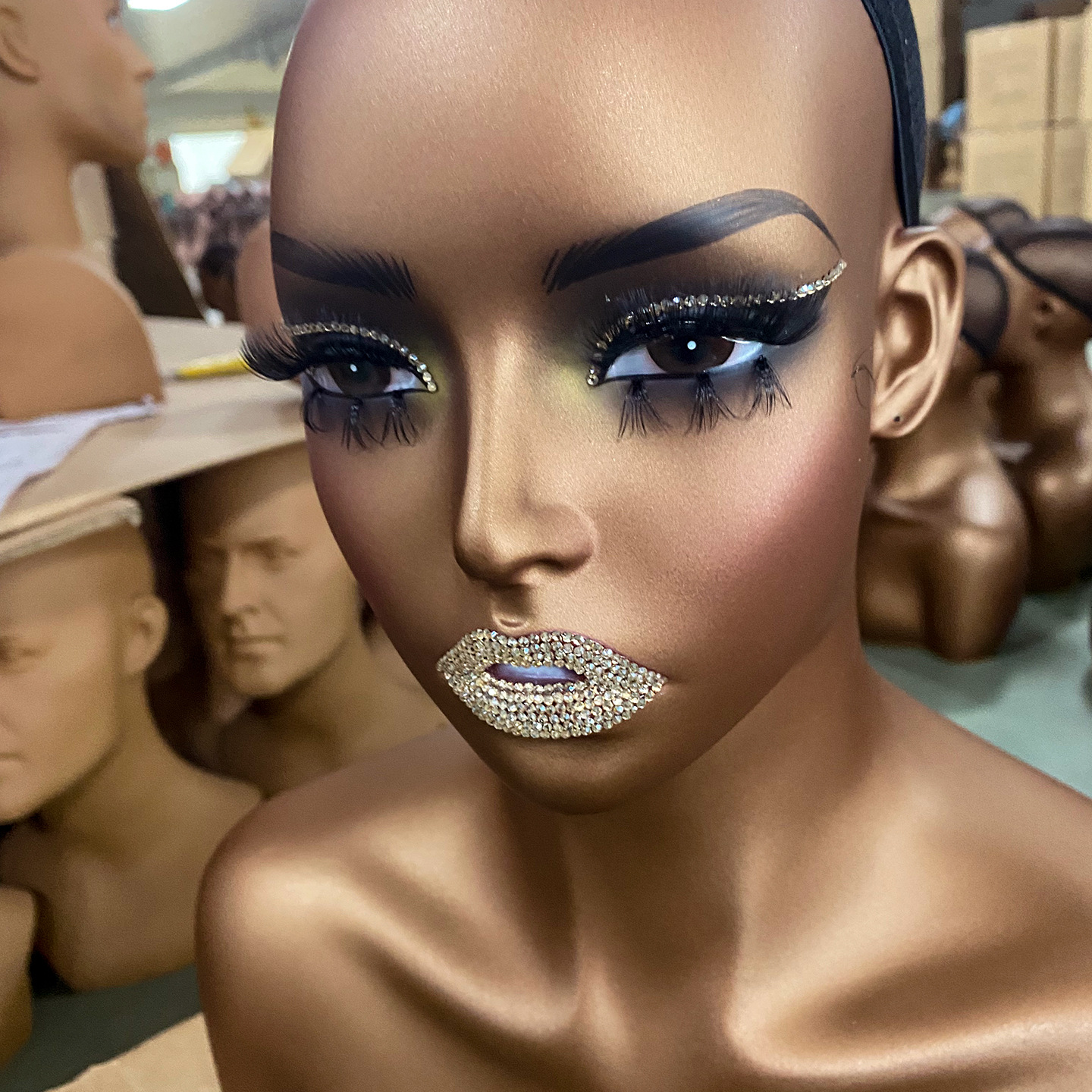 国内假发店橱窗展示头模 新款模特头源头工厂 亚洲假人头公仔头
