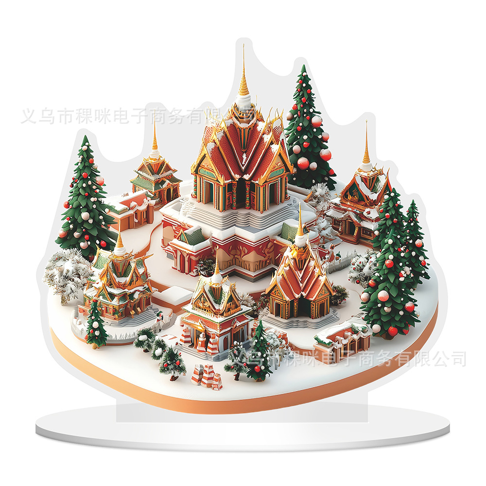 跨境新款立牌定制彩色圣诞城堡摆件圣诞节复活节装饰品亚克力立牌