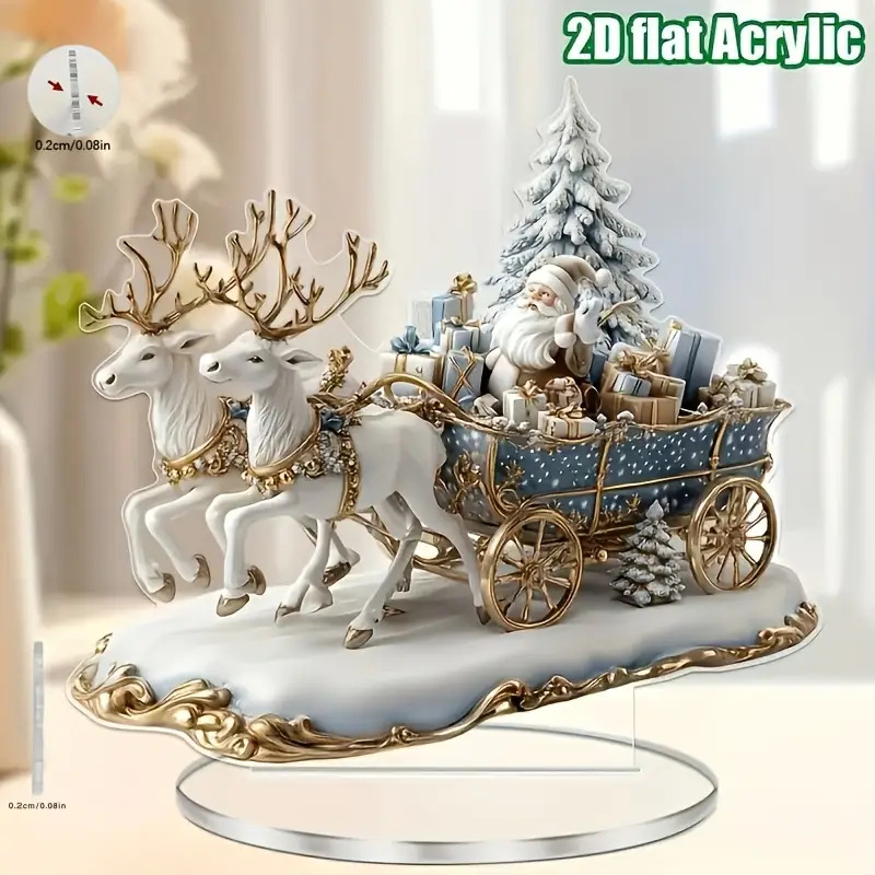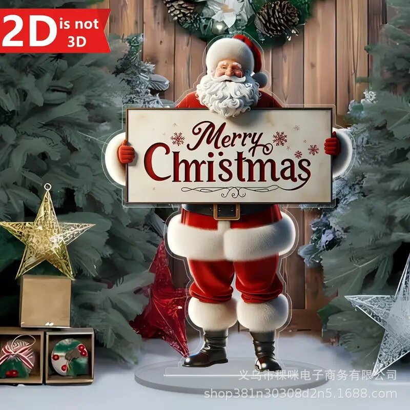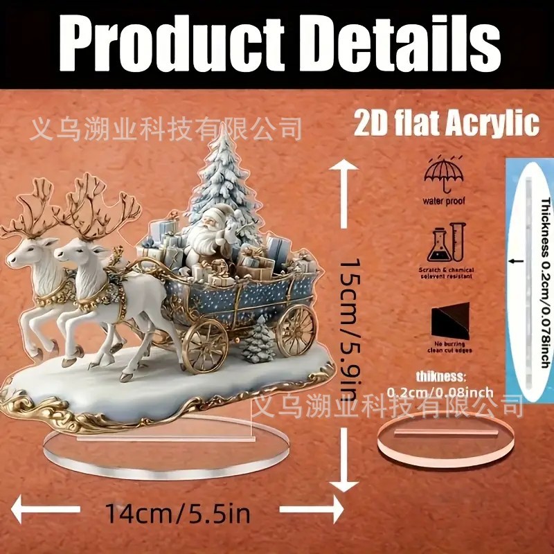 2D跨境新款波希米亚风圣诞雪橇老人节日装饰办公桌亚克力平面摆件