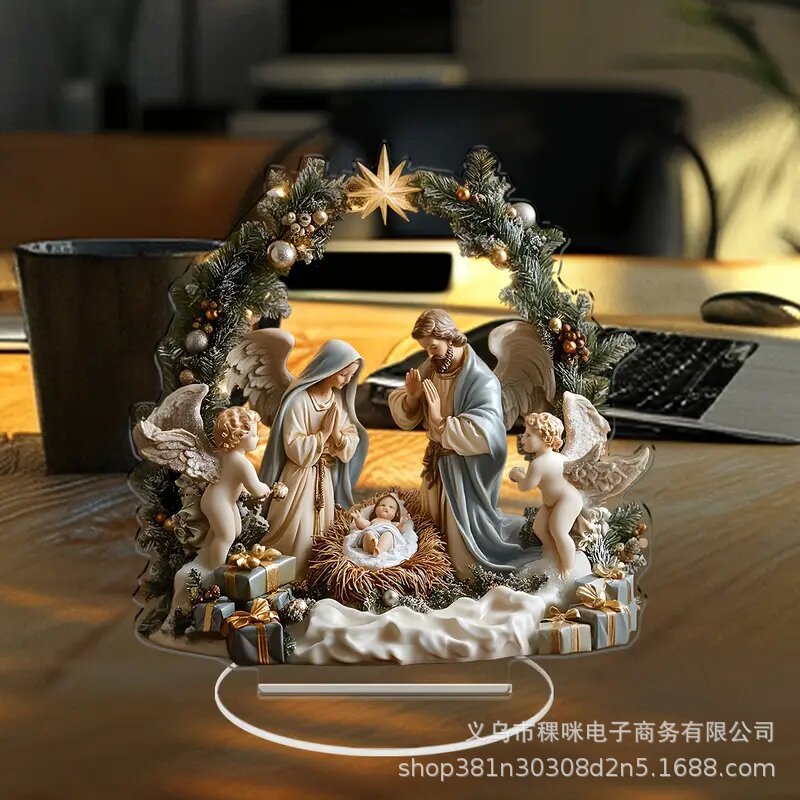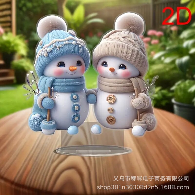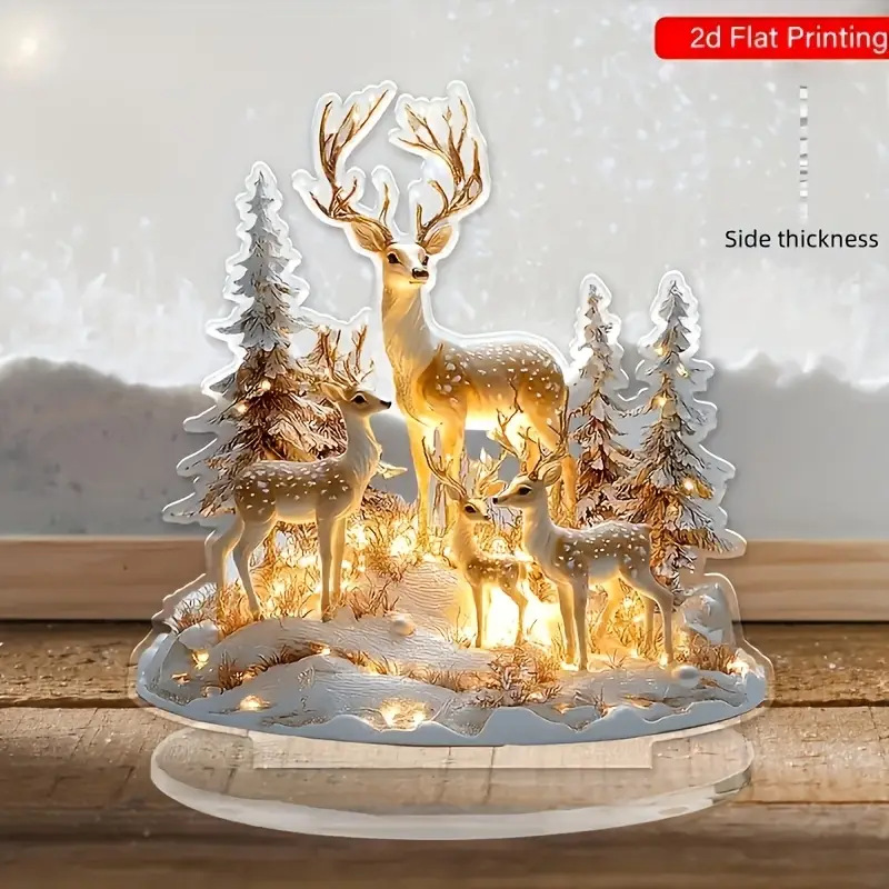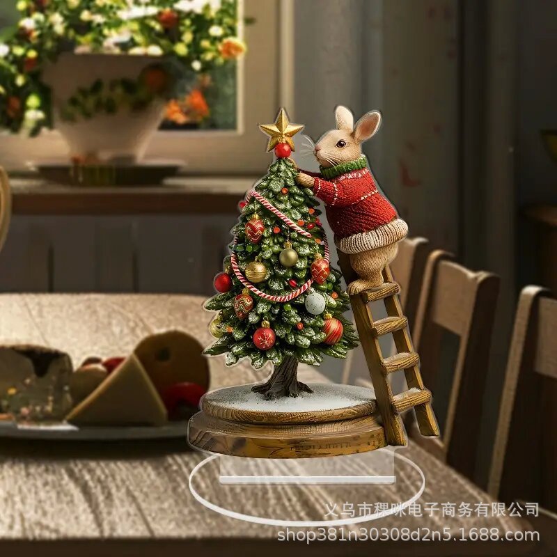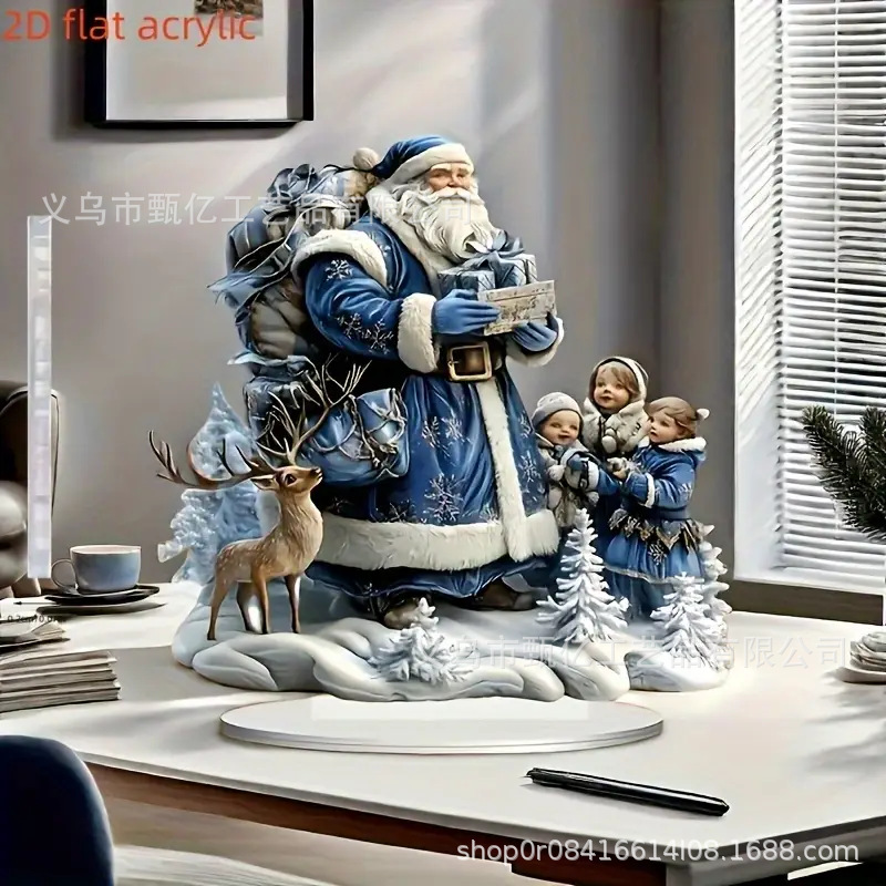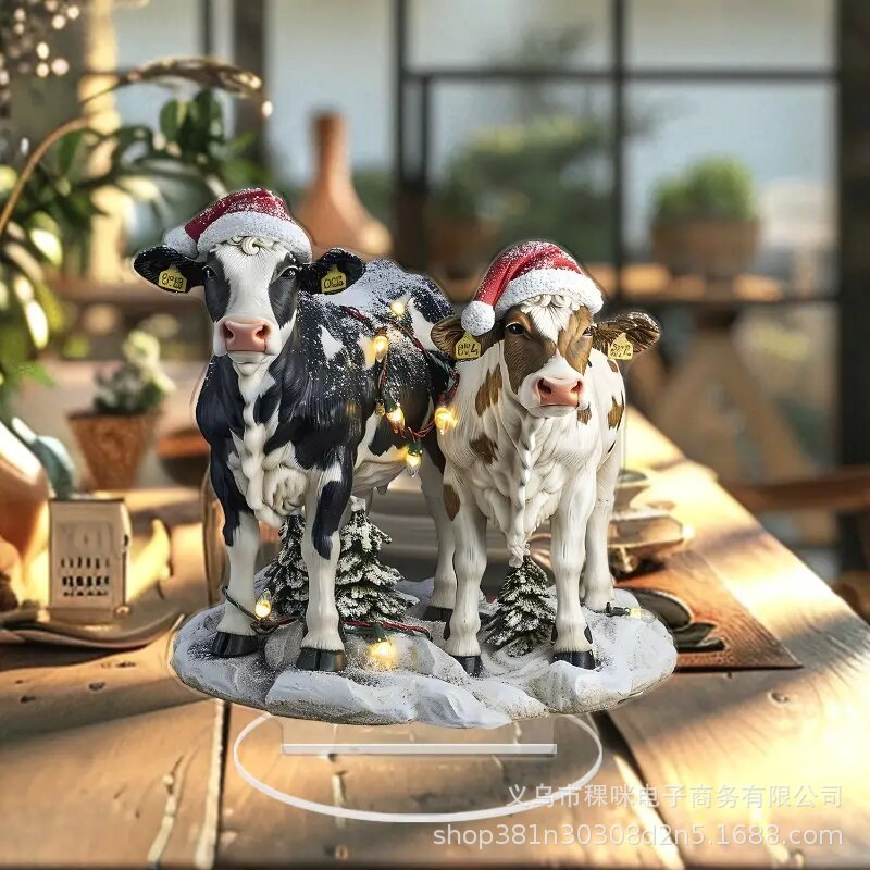 跨境新品圣诞老人和小牛动物2D亚克力桌面摆件客厅卧室美化摆件