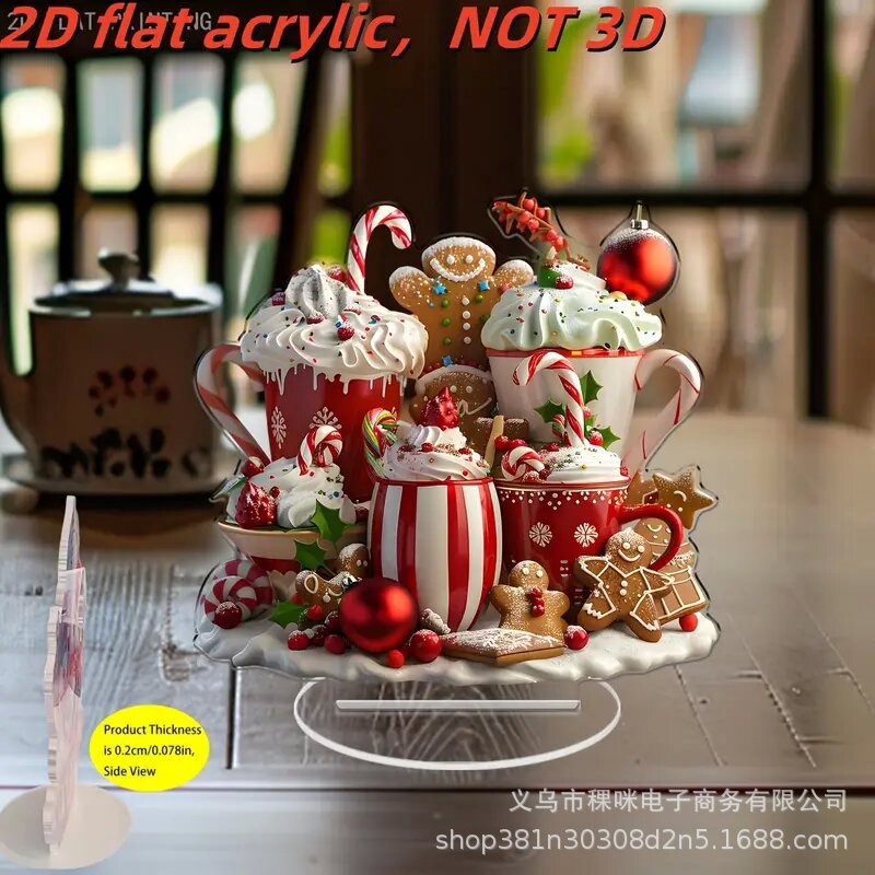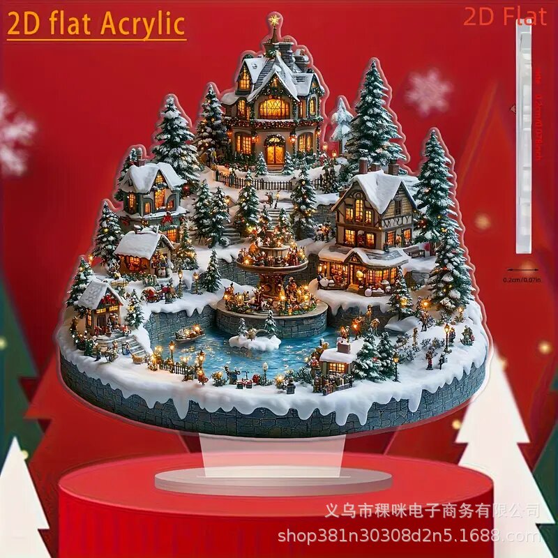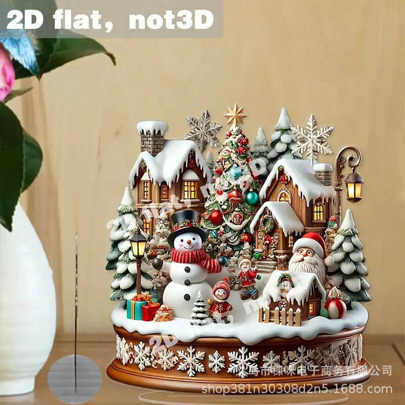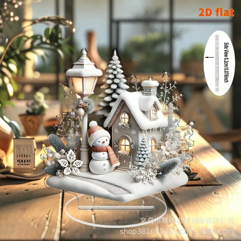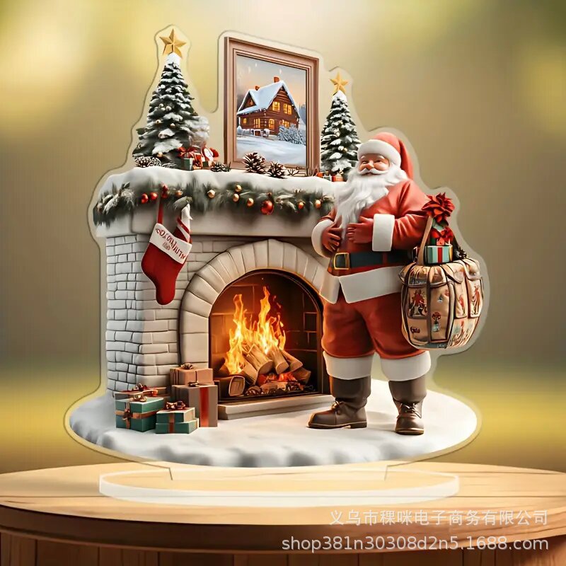 跨境新款圣诞老人节日桌面装饰品2D平面亚克力工艺品摆件圣诞小屋