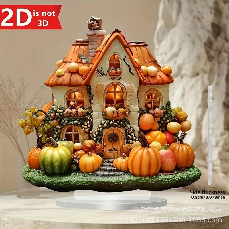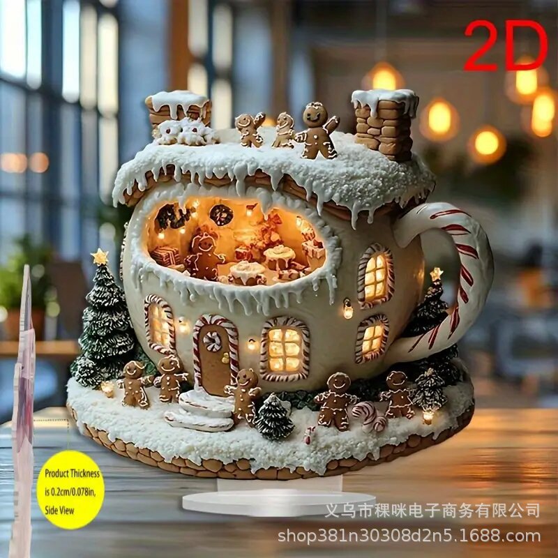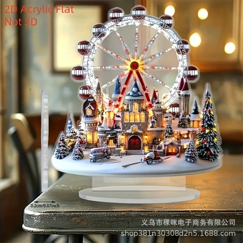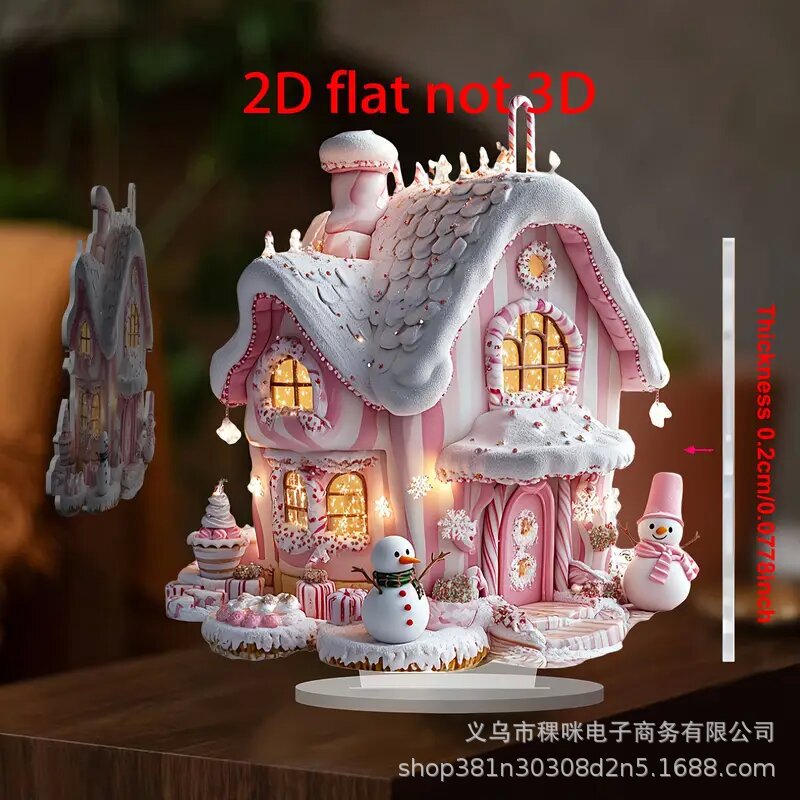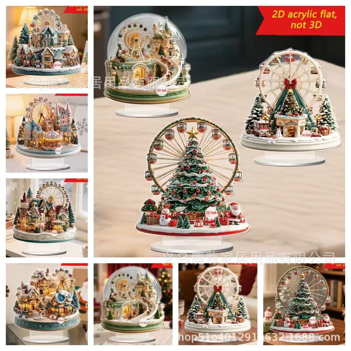 跨境新品圣诞月亮小屋桌面装饰摆件家居办公2D亚克力玄关装饰摆件