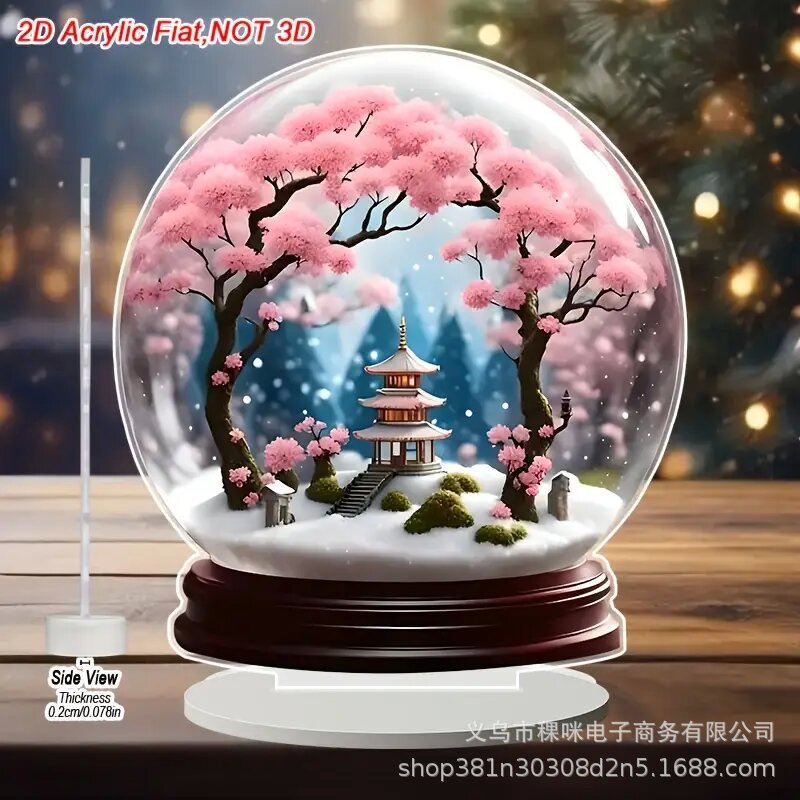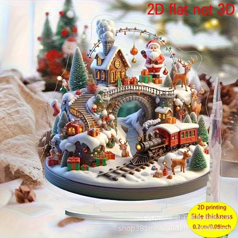 跨境雪山风景火车圣诞节节日系列2D平面亚克力桌面装饰摆件工艺品