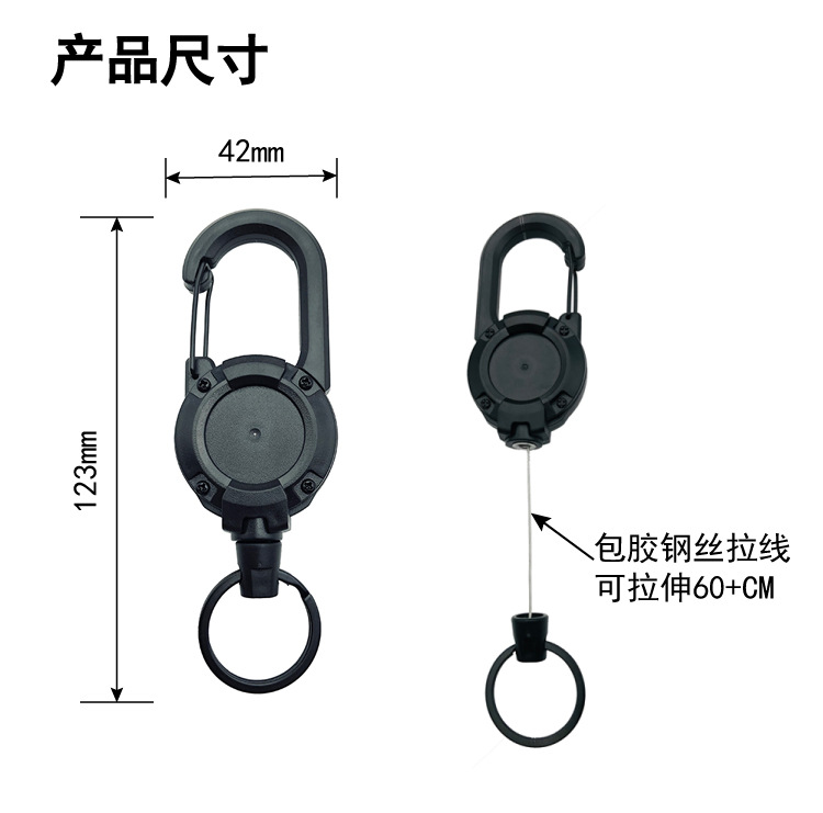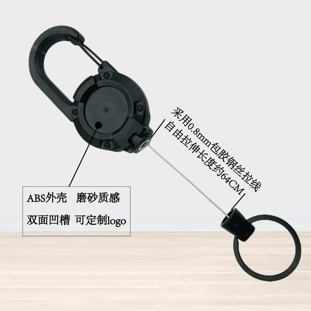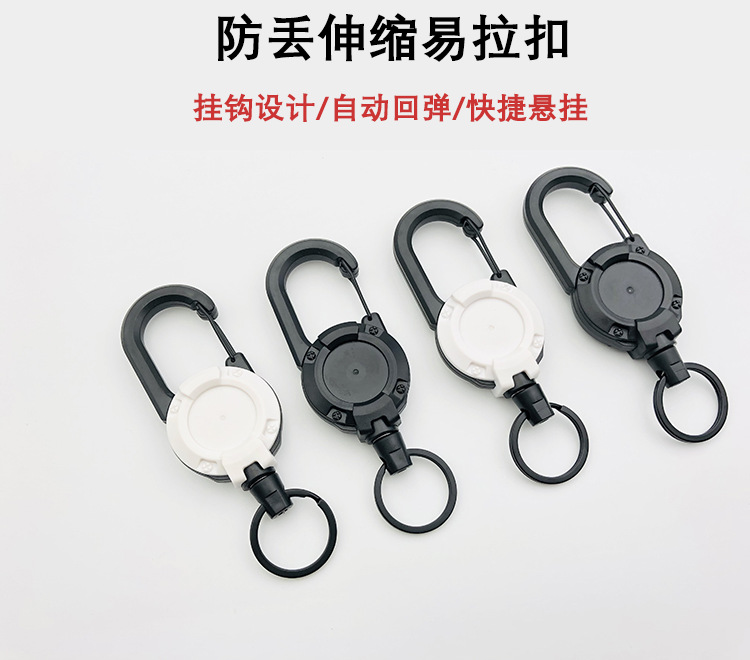 使用方法:将钥匙扣置于皮带或者包包上,钥匙放在钥匙圈上,使用时拉伸出来开门。不用时放手,自动回弹到腰间,避免经常性的钥匙随意丢放导致遗失.