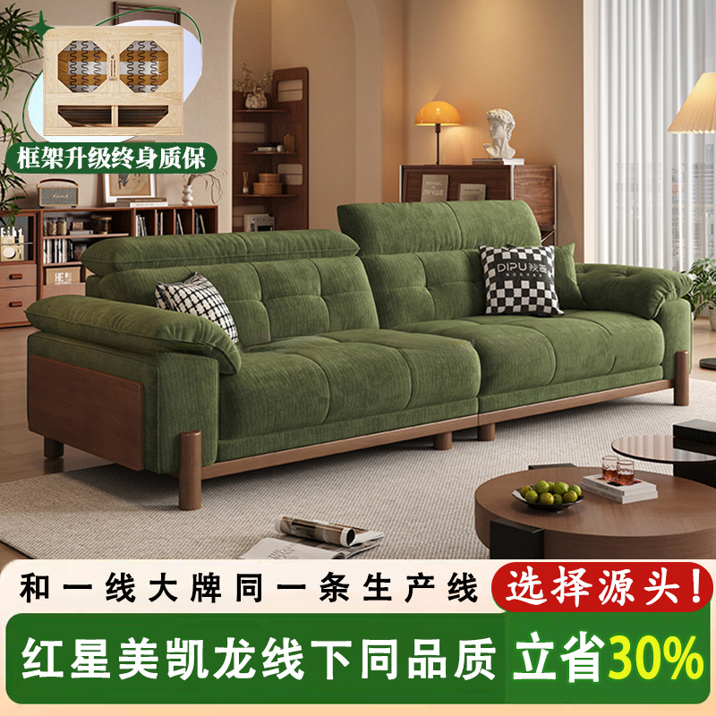 中古风可拆洗雪尼尔沙发客厅小户型直排双人实木佛山家具布艺沙发
