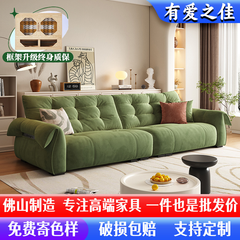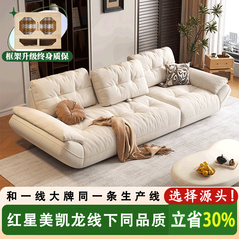 简约奶油云朵沙发客厅2025新款小户型中古风双人直排贵妃转角沙发