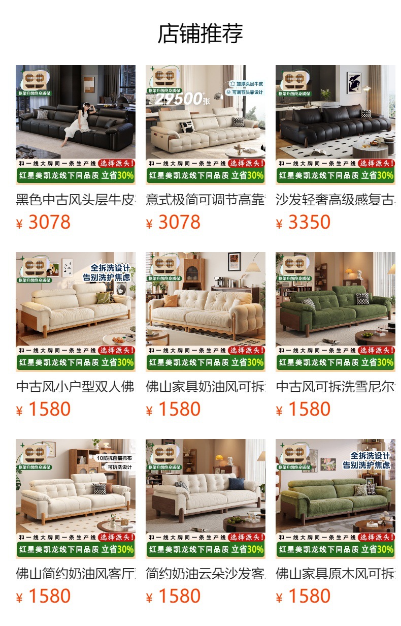 佛山家具帆船ソファーネット赤クリーム風布芸直列三人位背もたれ調節可能ソファー工場