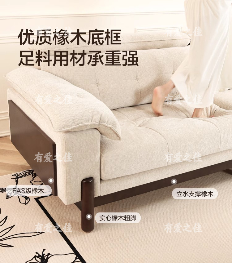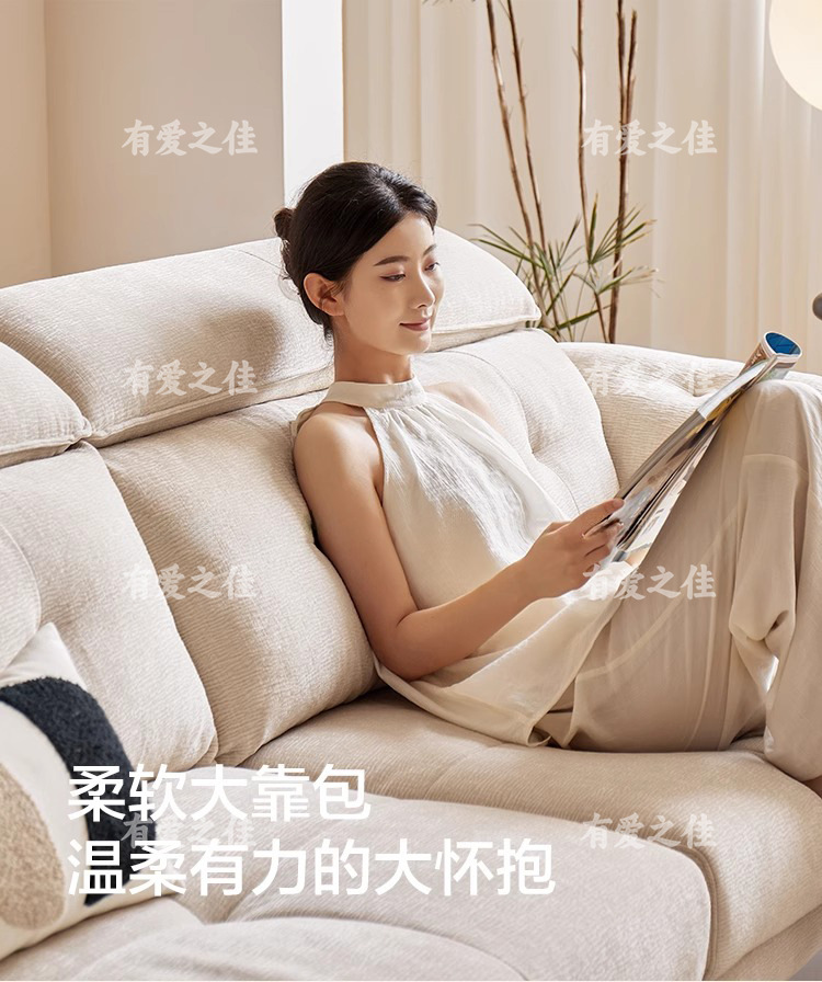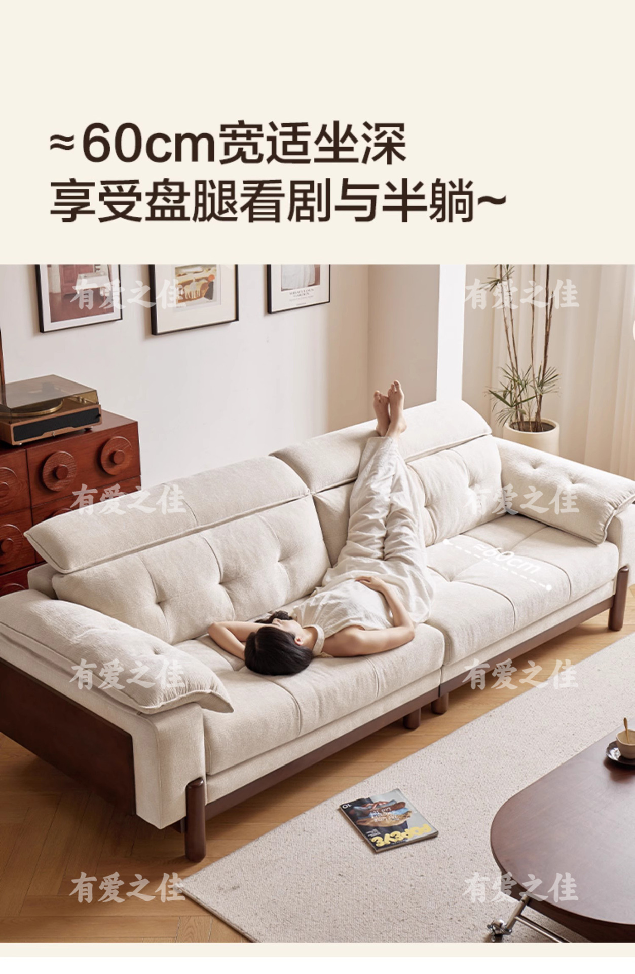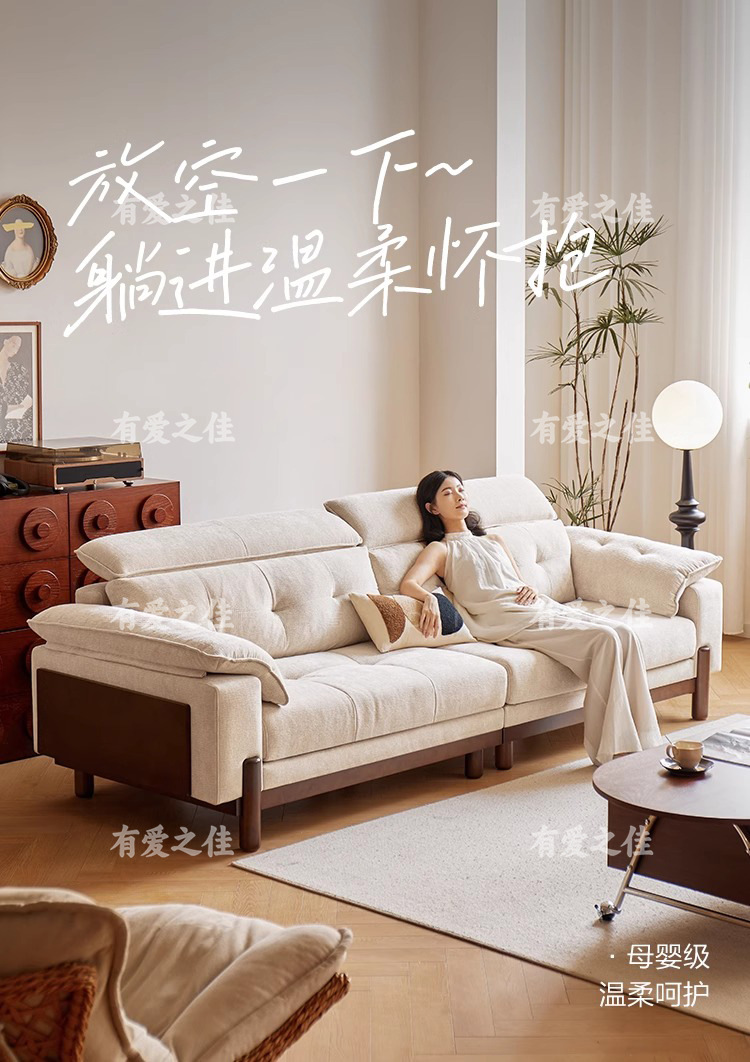 佛山实木中古风客厅模块布艺沙发双人小户型奶油风雪尼尔云朵沙发