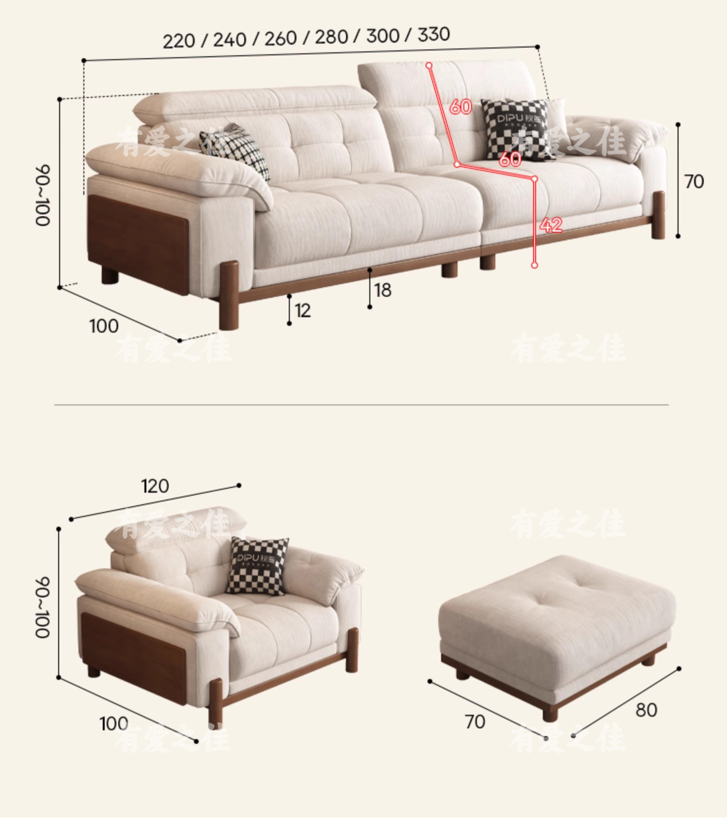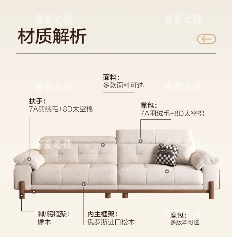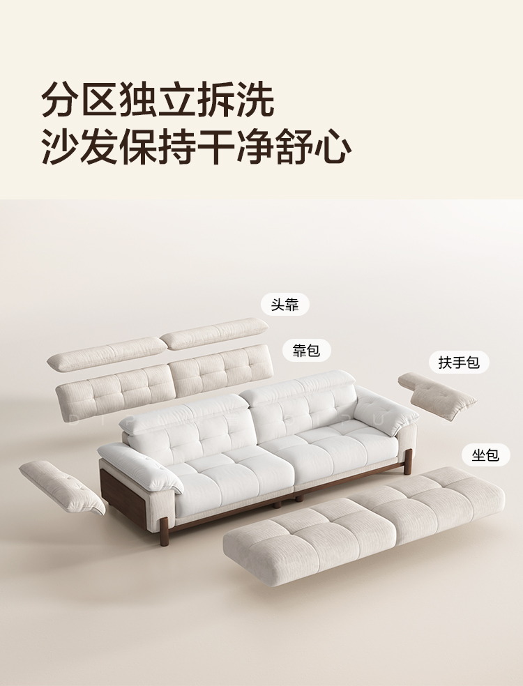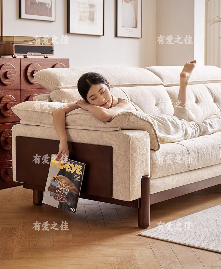 佛山实木中古风客厅模块布艺沙发双人小户型奶油风雪尼尔云朵沙发