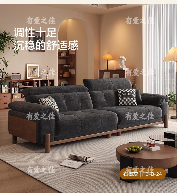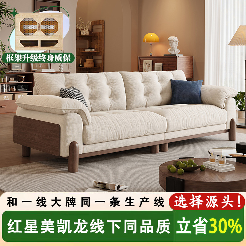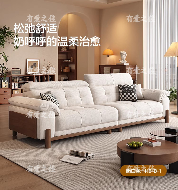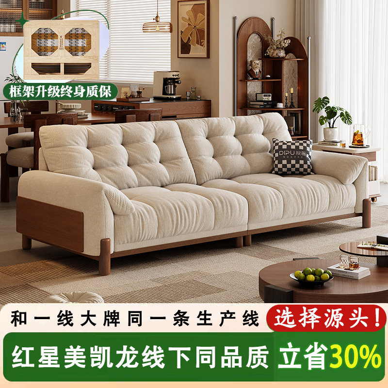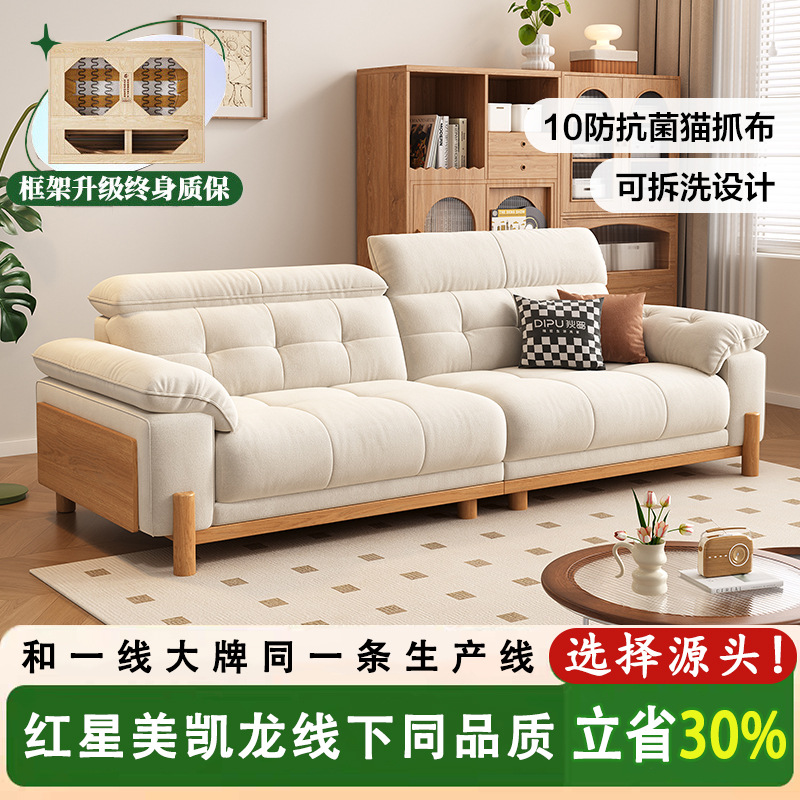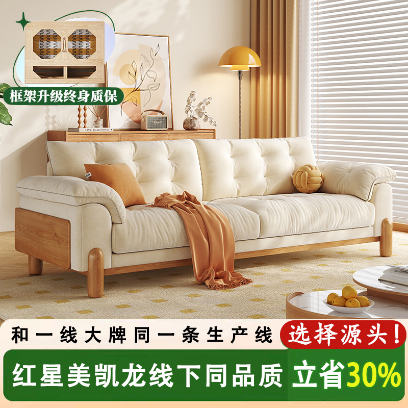 北欧ログスタイルソファクラウド和風ストレート小型アパートメントハイエンドシンプルソファリビングルーム無垢材ファブリックソファ