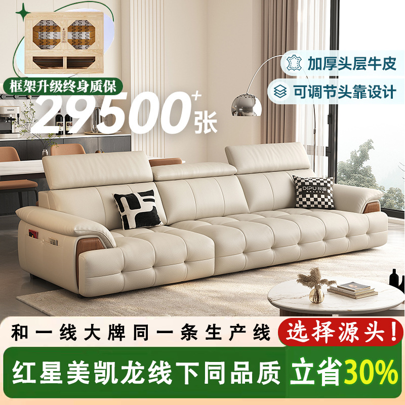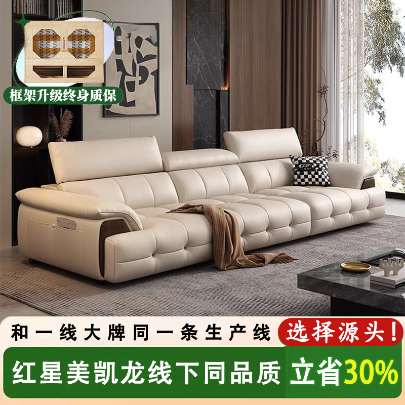 イタリア風ミニマリスト調節可能ハイバックフランス製本革ソファ佛山家具一層牛革直列型リビングルームソファ