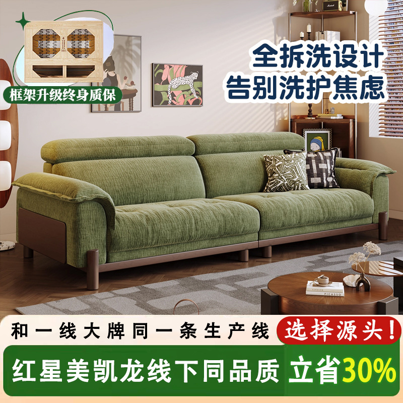 イタリアのライト高級コネリー綿とリネン生地ソファリビングルーム 2025 新しいミッドセンチュリースタイルストレート小型アパートレザーソファ