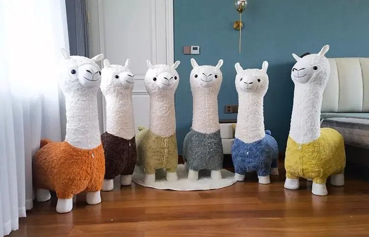 网红创意大号羊驼凳子客厅落地摆件毛绒落地摆件毛绒动物座椅