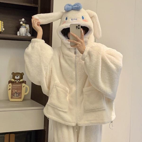 chiikawa睡衣女款珊瑚绒加厚可爱乌萨奇吉伊小八套装家居服秋冬季