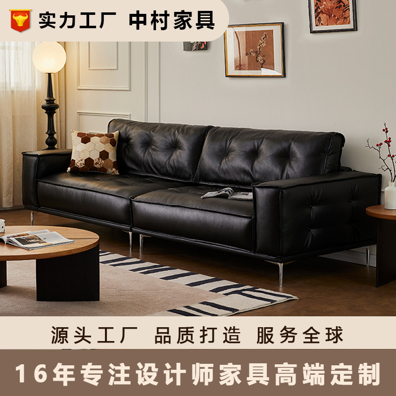 高端意式大黑牛真皮沙发黑色加厚开边工艺亚岛时增全青皮佛山沙发