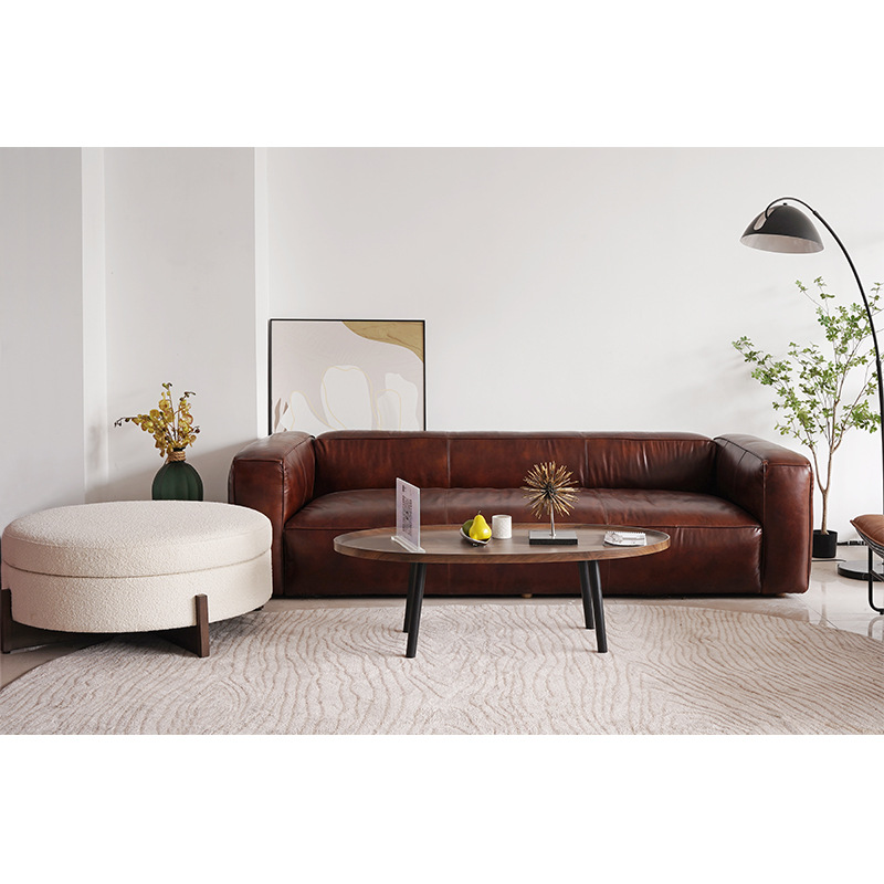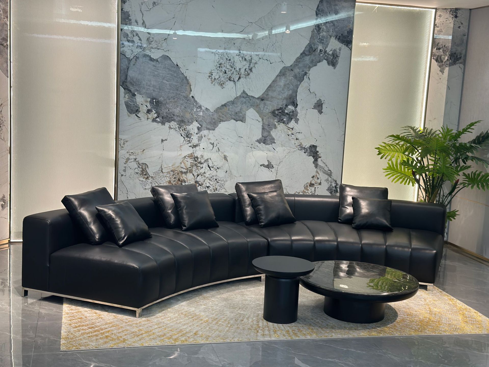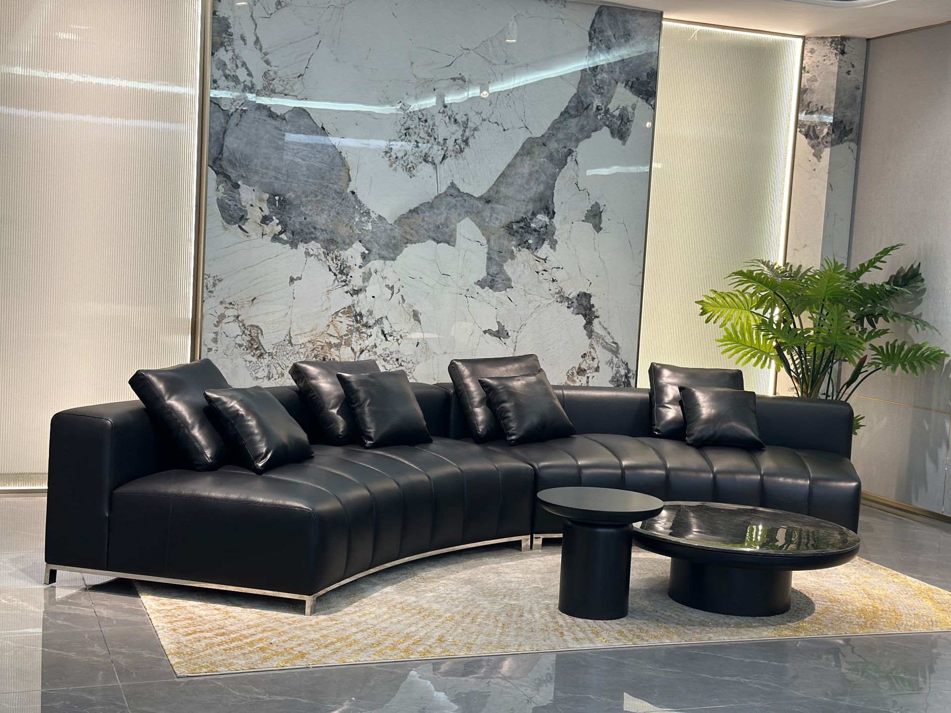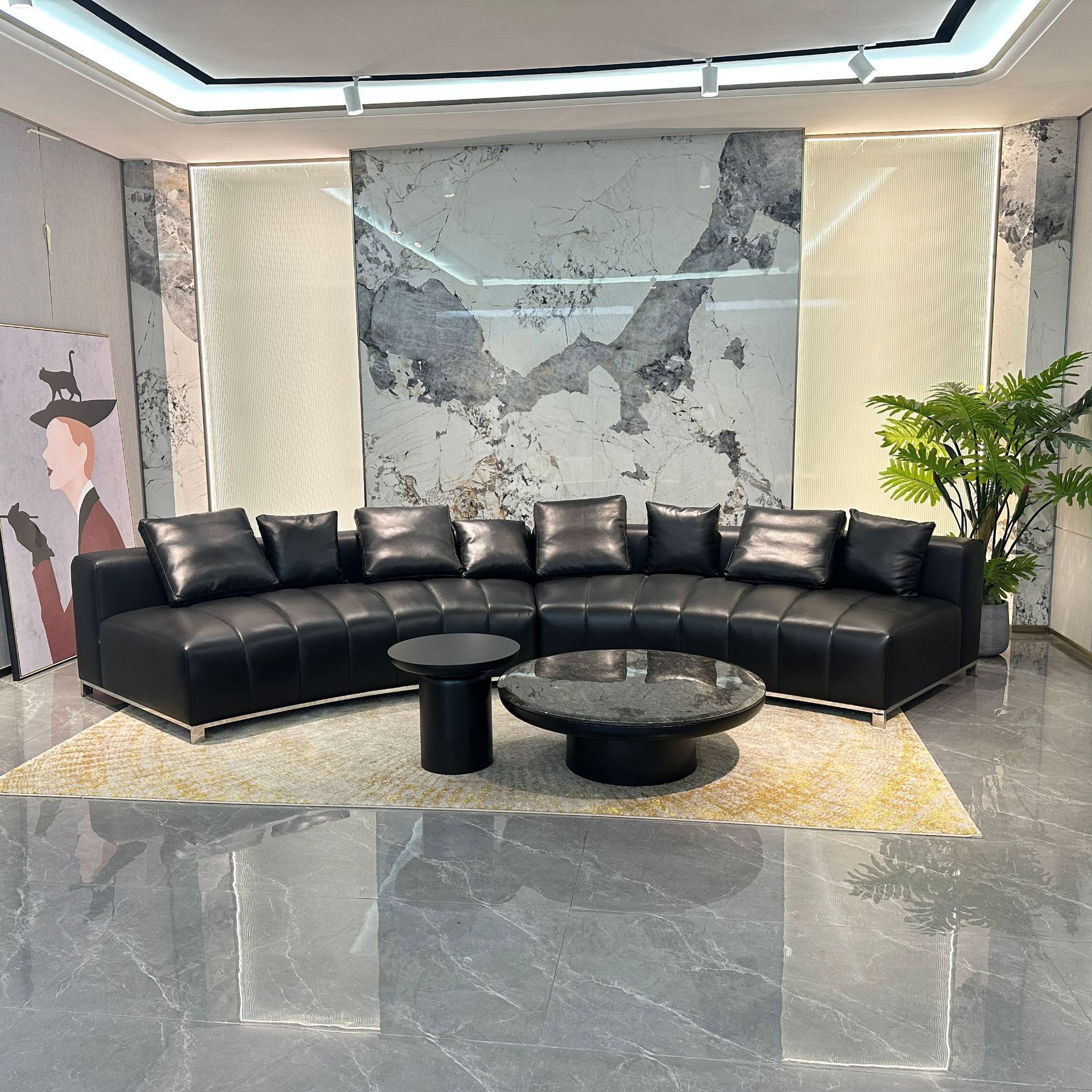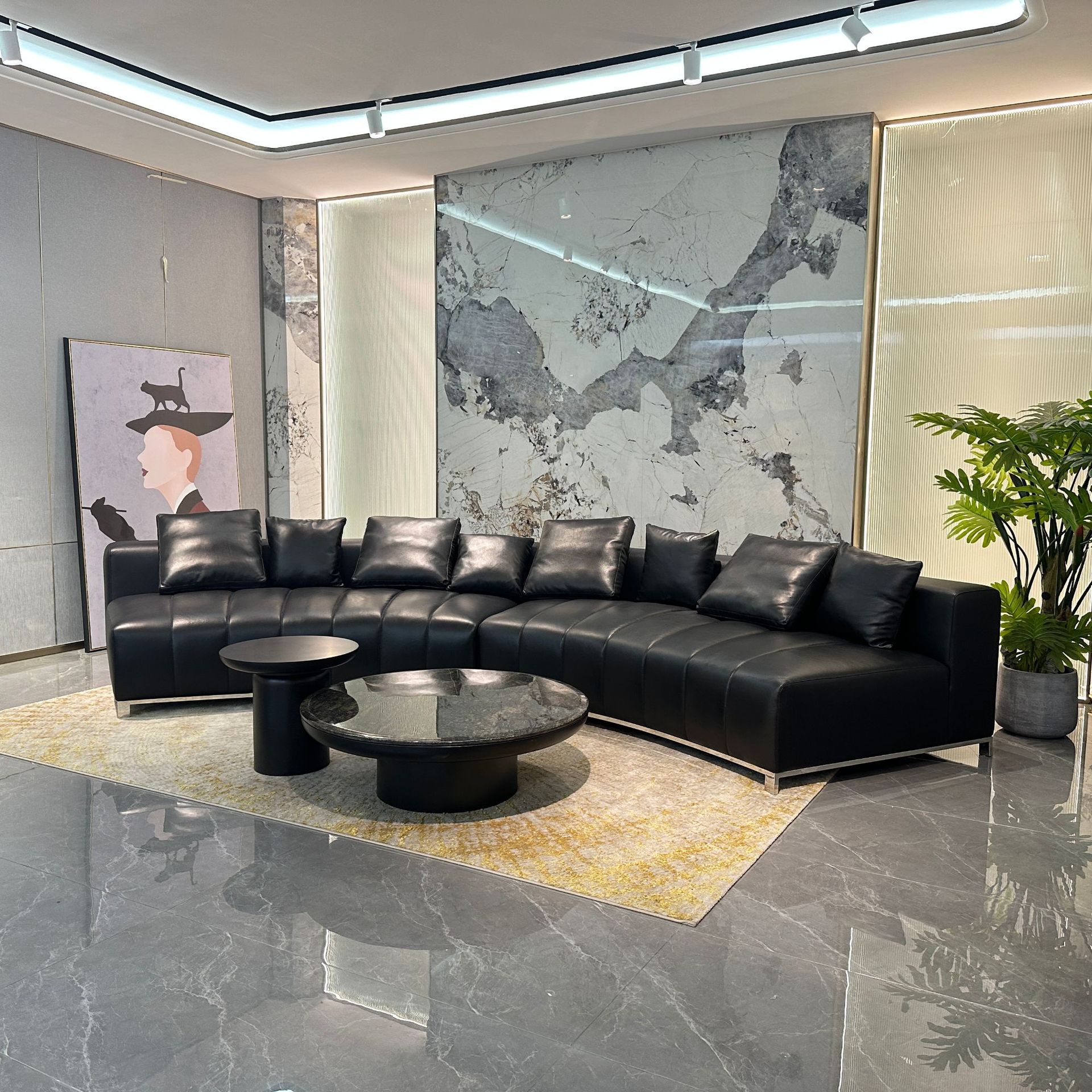广东佛山意式轻奢真皮沙发 家庭客厅四人位现代简约休闲接待沙发