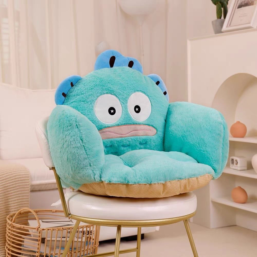 可爱丑鱼椅子坐垫秋冬季保暖毛绒靠垫腰靠一体学生屁垫床边小沙发