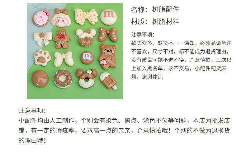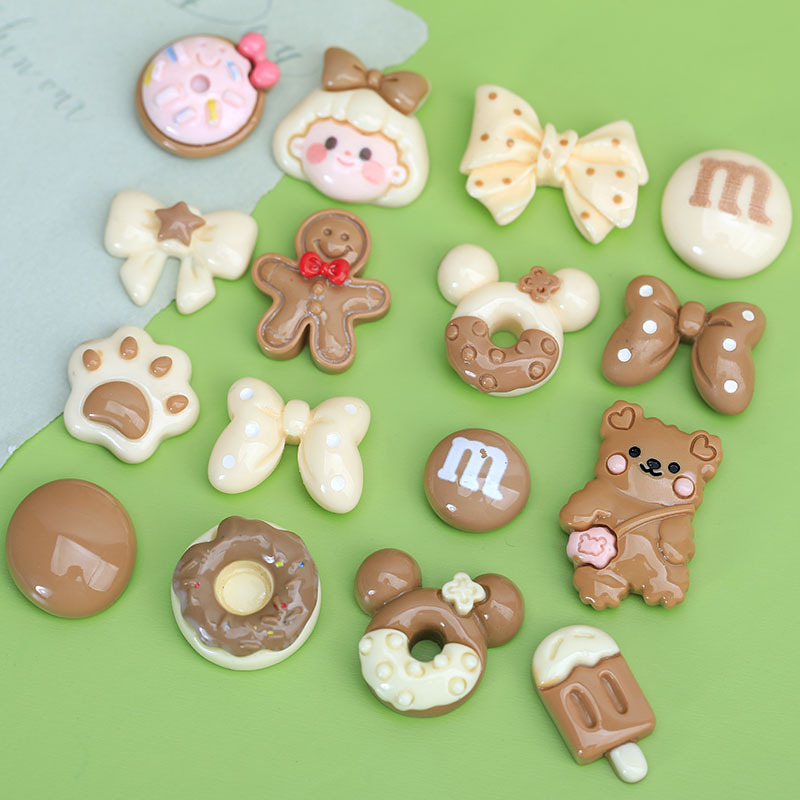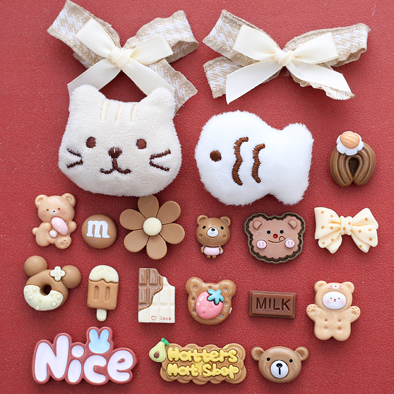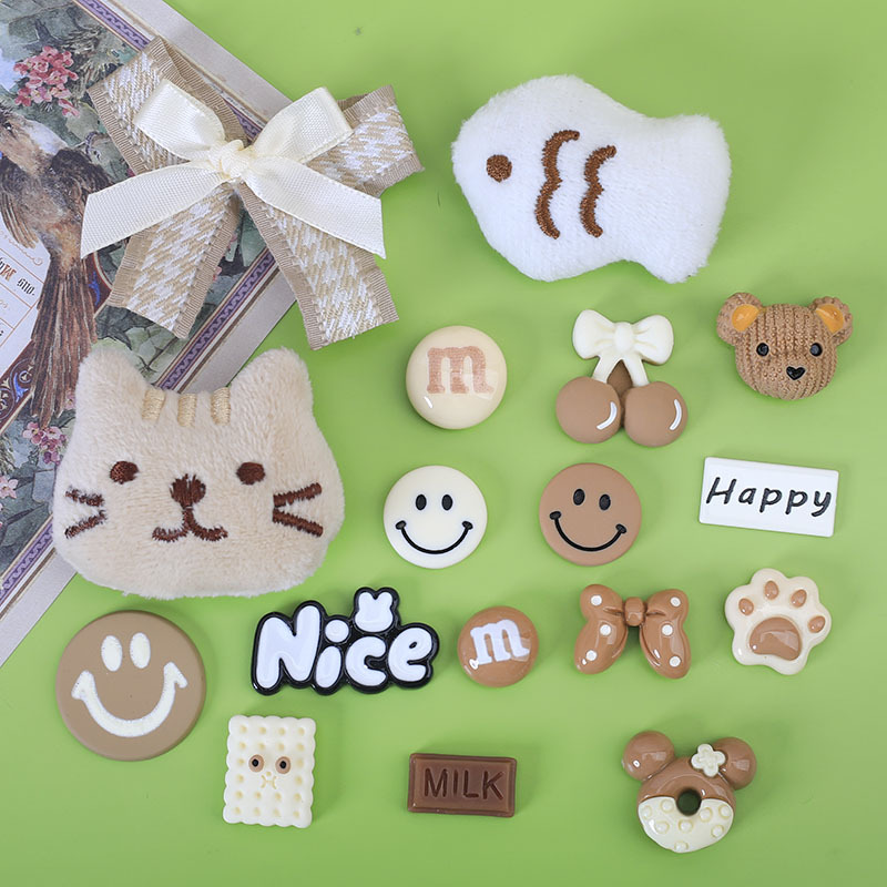 米咖色系混合卡通diy小饰品奶油胶配饰发夹洞洞鞋扣装饰树脂配件