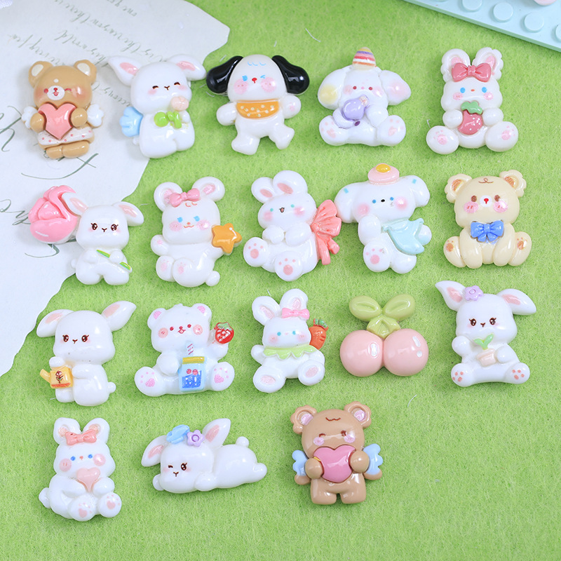 明るい面の漫画のウサギの熊の樹脂の部品のdiyのクリームのゴムの携帯のケースの穴の靴のヘアピンのアクセサリーの材料