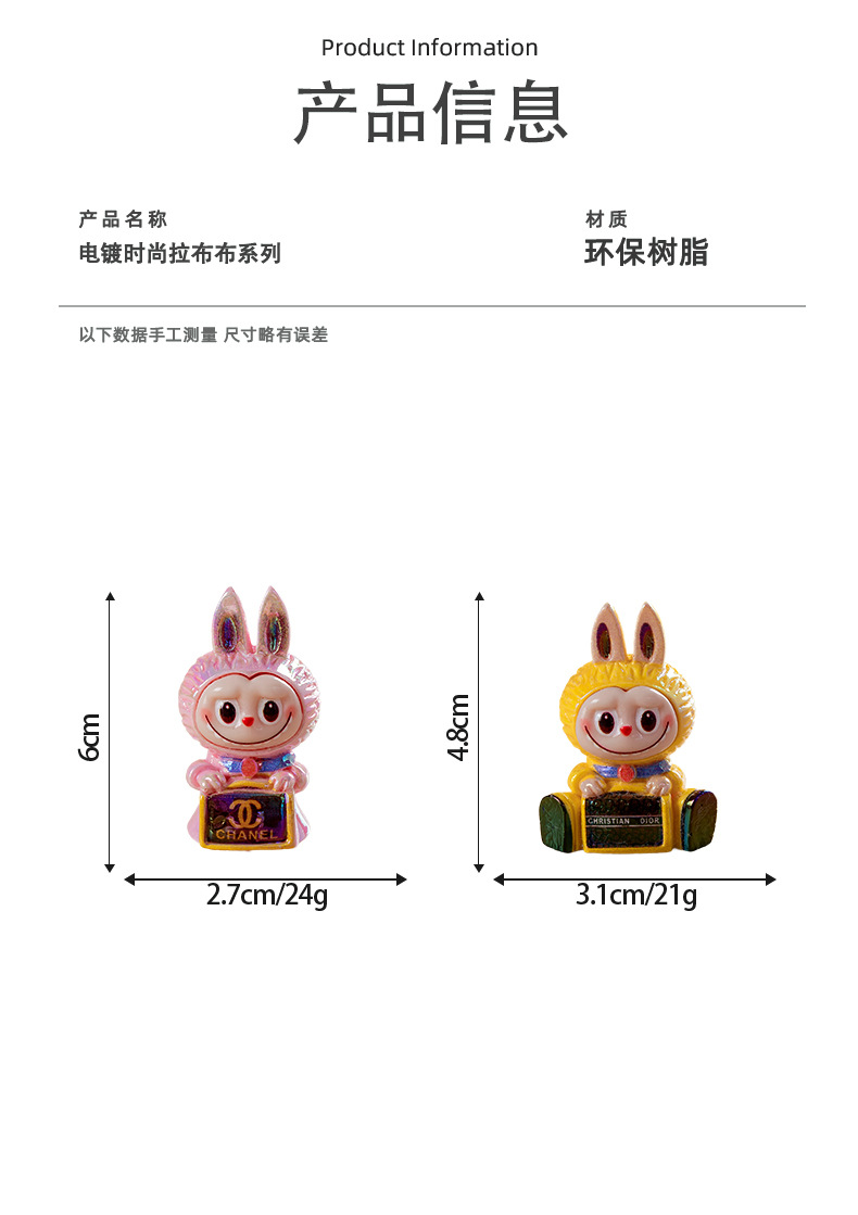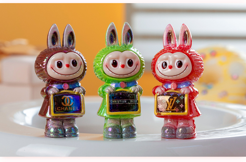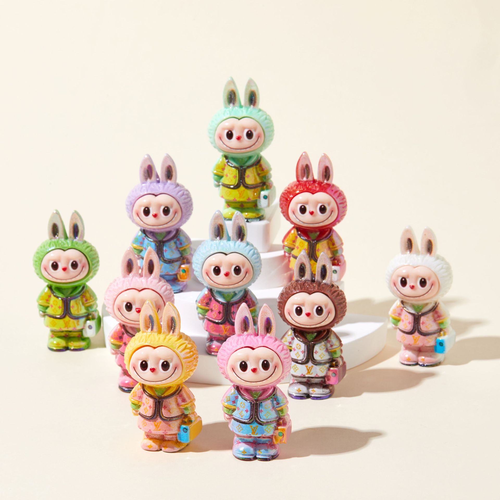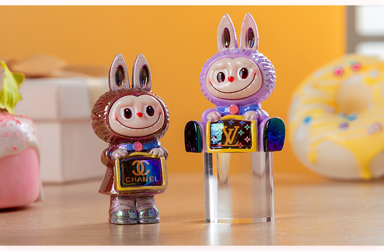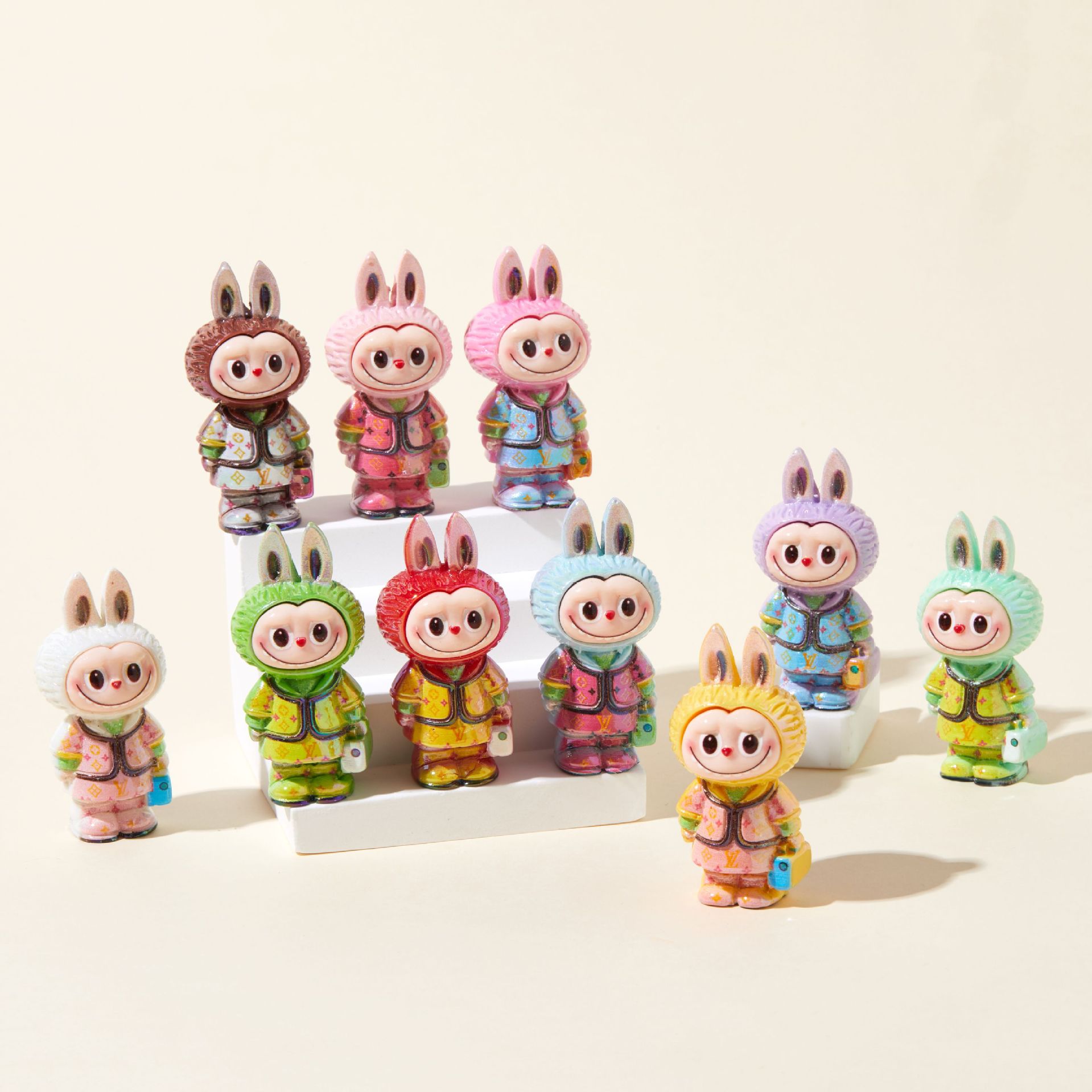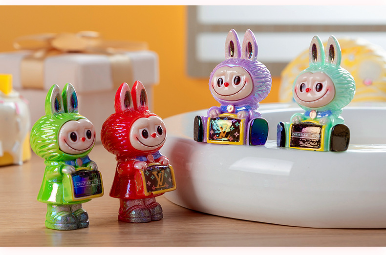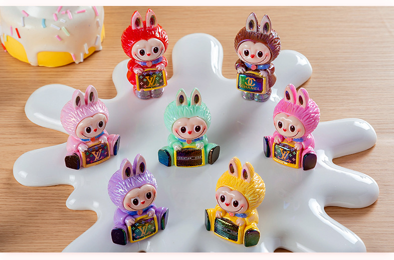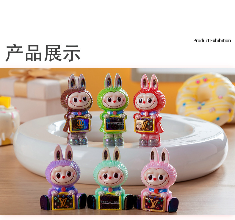 创意电镀拉布布 DIY潮玩萌粒盲盒潮玩公仔树脂饰品桌面车载小摆件