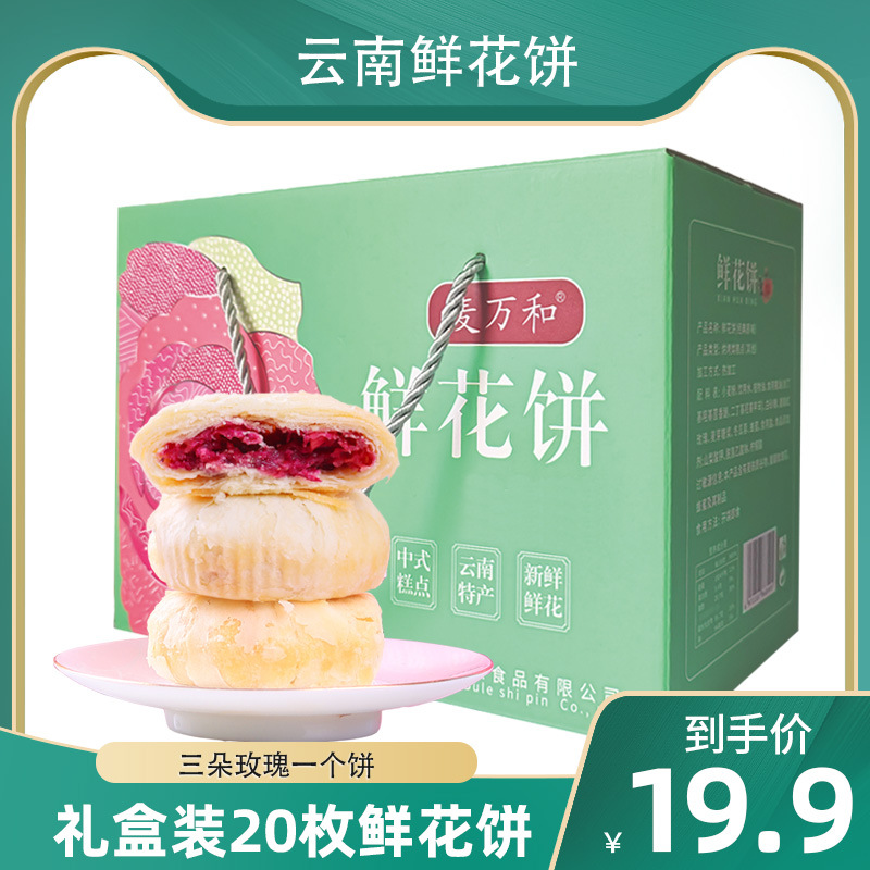 云南鲜花饼礼盒装过年送礼品玫瑰丽江产现烤走亲戚春节整箱批发