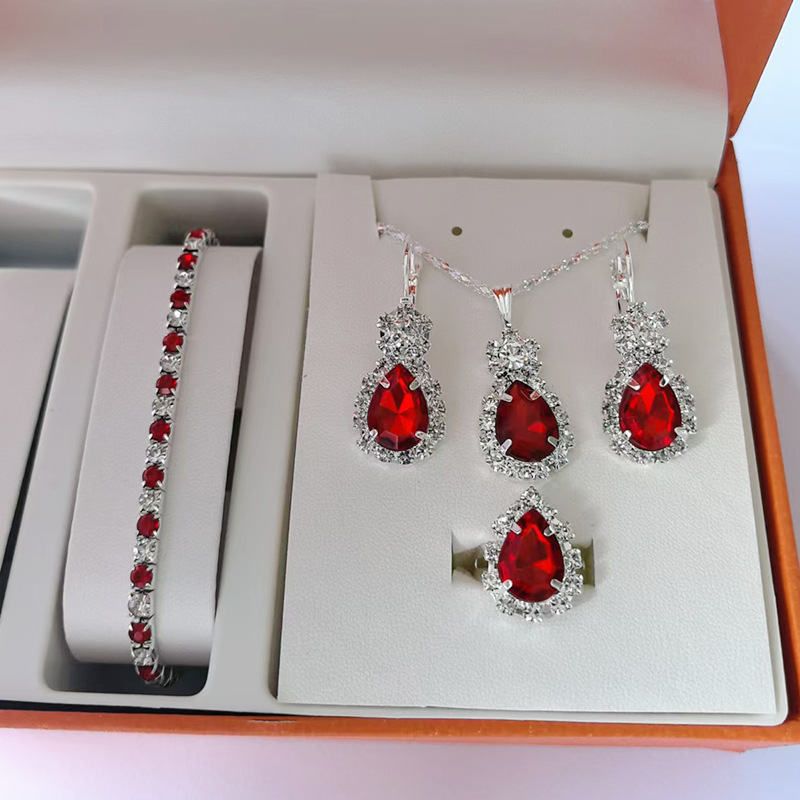 新型欧米のアクセサリーセット女性ファッション気質個性水ドリルジルコンネックレスピアスリング腕時計アクセサリー