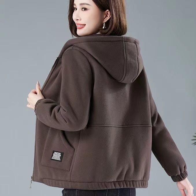 小个子女装时尚洋气减龄加绒保暖外套妈妈款宽松显瘦遮肚秋冬新款