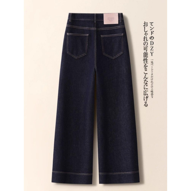 丹寧藍ジーパン女性春2025年新型ズボン高腰春秋高級九分ズボンストレートズボンワイドパンツ