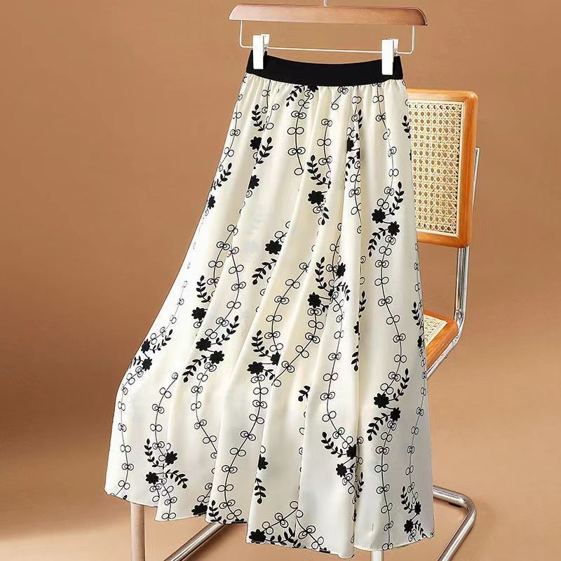 2025夏の新型高腰シフォンのプリントはやせている中のa字の大きいスカートの子供を覆います。