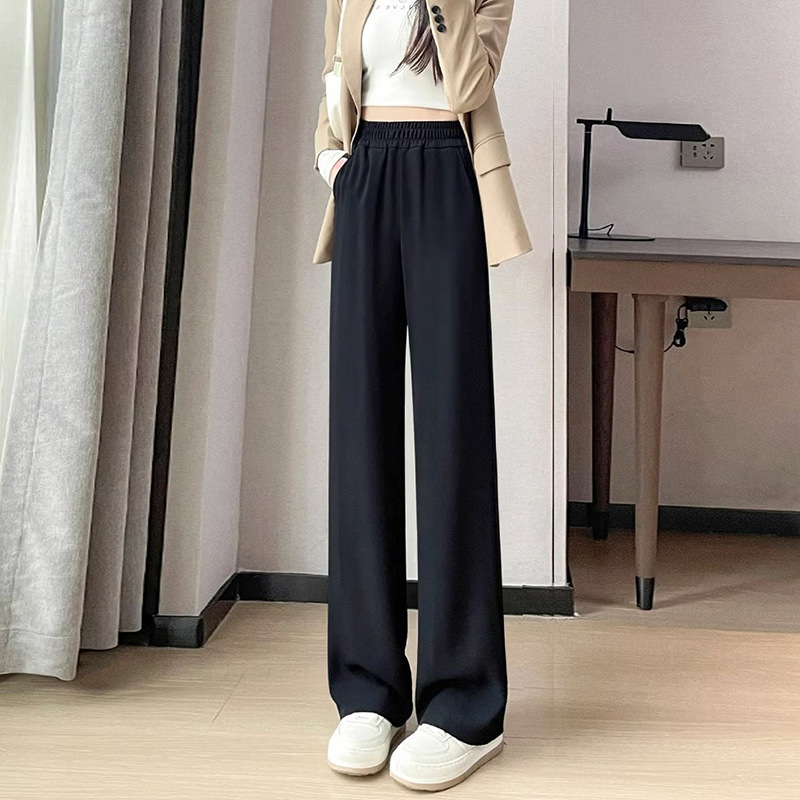 腰を緩めて腰を垂れた感じのスーツの広腿のズボンの女性の2025春秋の薄い金の小さい背の黒色の狭い版のまっすぐな筒のカジュアルなズボン