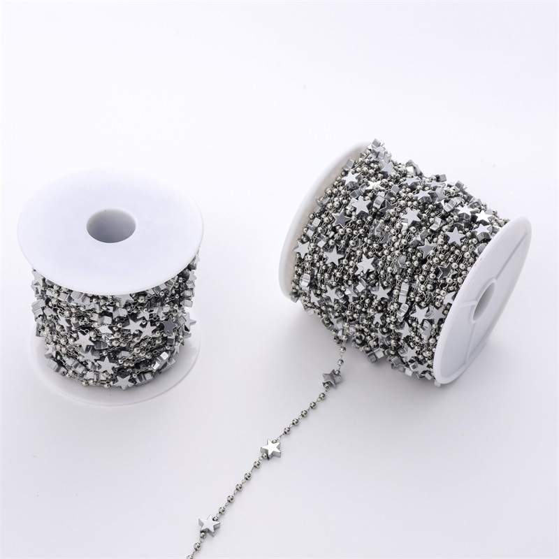 新品五芒星黒胆石鋼珠チェーンステンレスチェーンシンプル個性チェーン星アクセサリーdiy部品