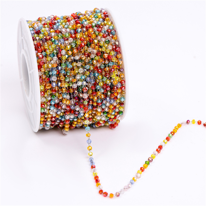 1センチ平水晶ステンレスチェーンビーズ手作り間隔チェーンdiy手作り水晶チェーン服装イヤリング