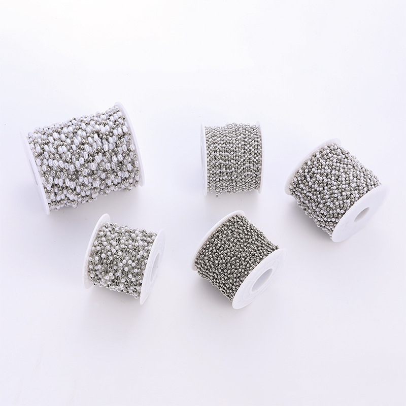 春の新商品の真珠の間のステンレスの玉は手で玉のチェーンを通します。