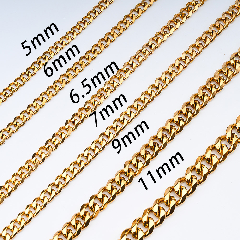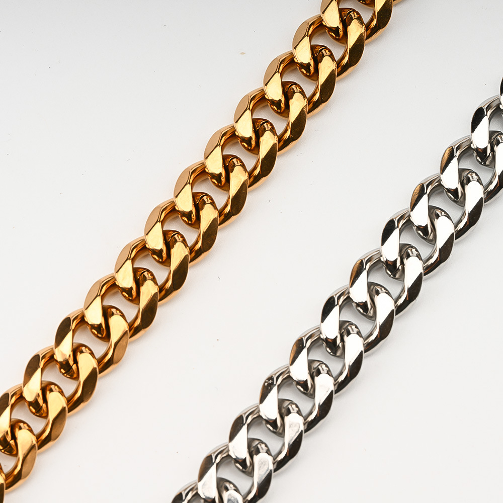 欧米のヒップホップ18kの保色の双編の平型のチェーンのステンレスの真金のサイズの多様な切断面の粗鎖のDIYの潮流