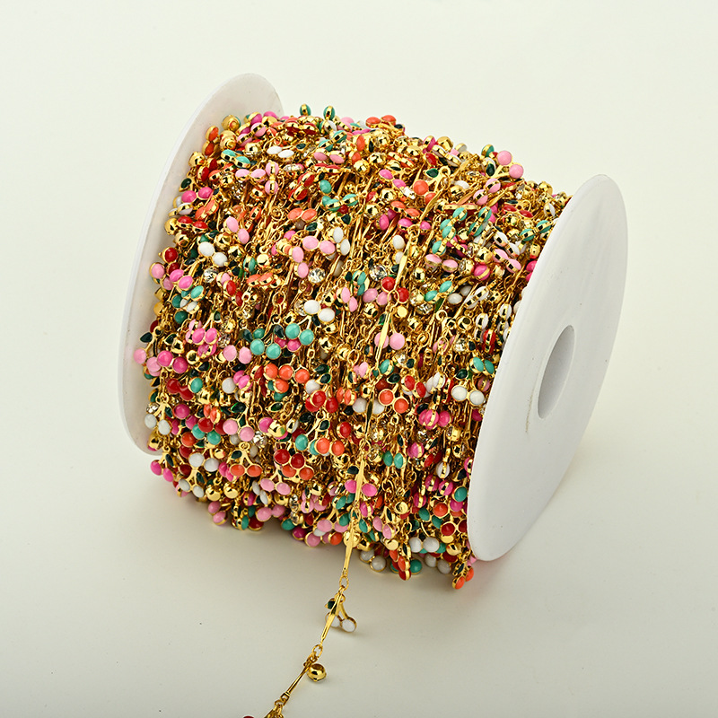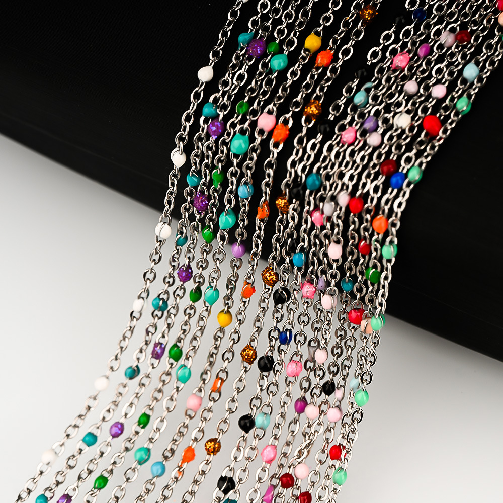 カスタマイズ可能なステンレス鋼0.4フラットクロスオイルドロップエナメル手作りチェーン、越境卸売カラーチェーン