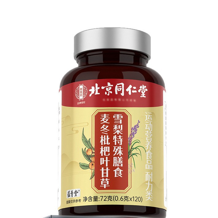 北京同仁堂麦冬枇杷叶甘草雪梨片 咳嗽胸闷气短烟72克/瓶一件代发