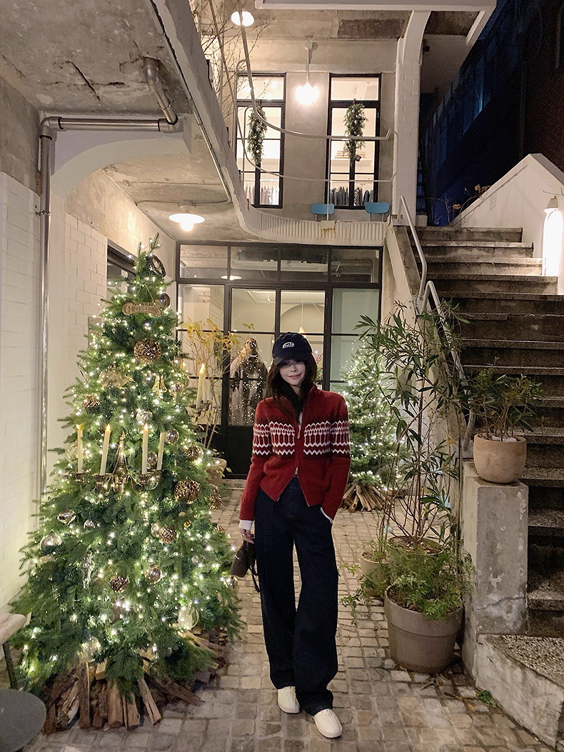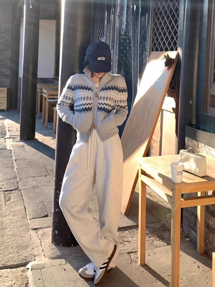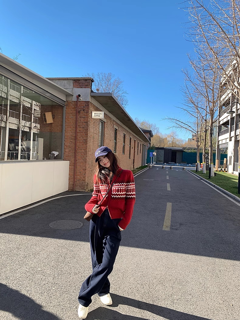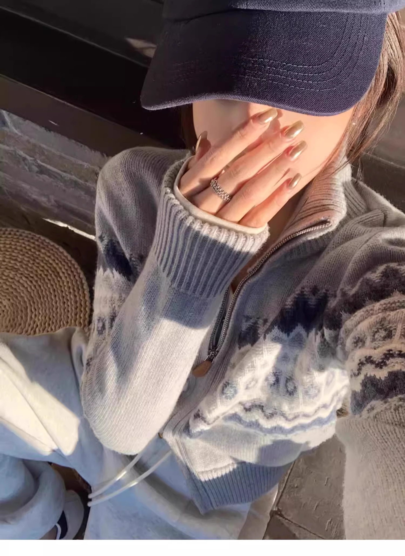 100%纯羊毛费尔岛花纹圆领开衫2025秋冬新品休闲甜酷学院毛衣开衫