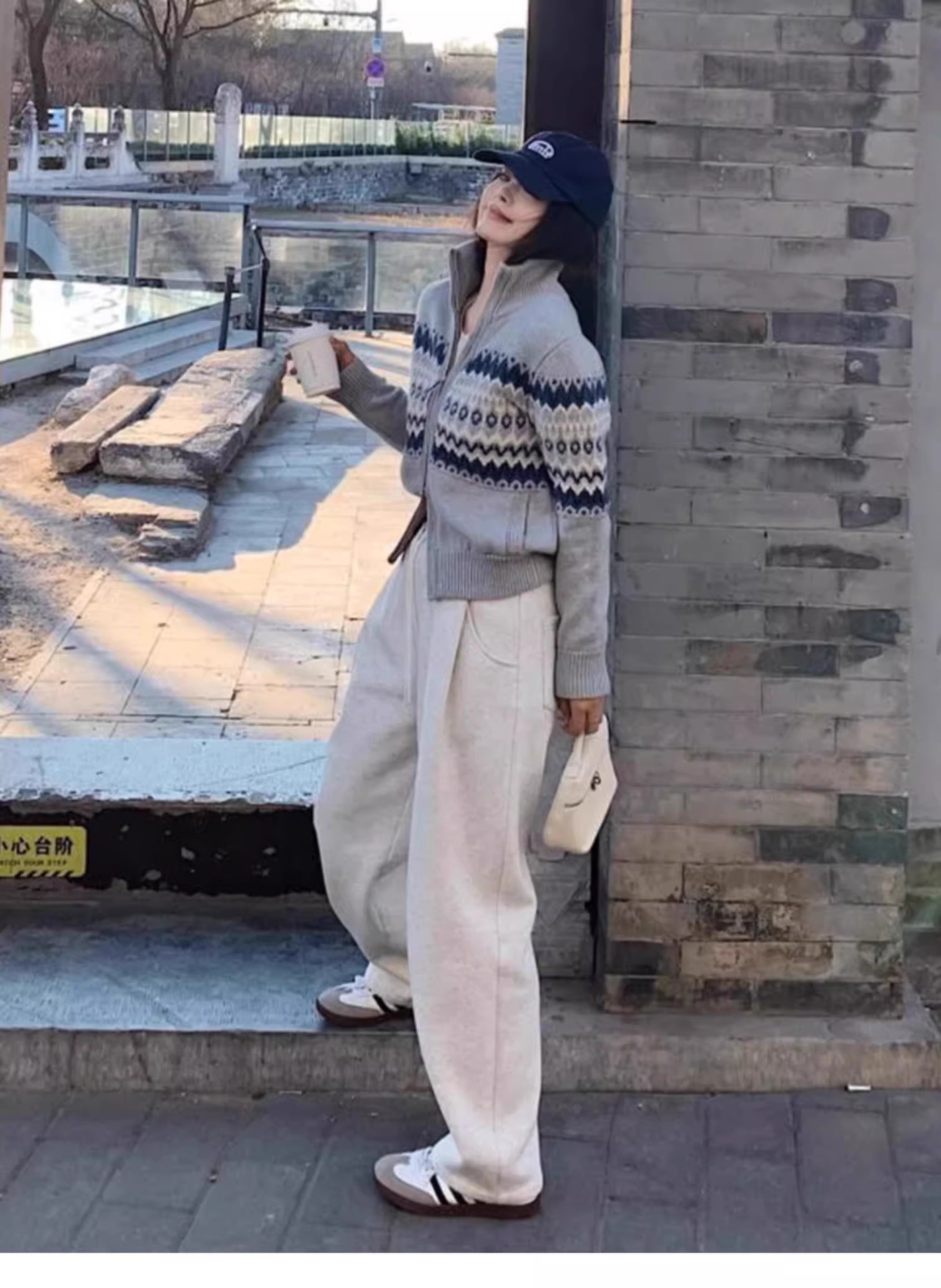 灰色麻花拉链毛衣外套女秋冬厚款慵懒风新款拉链纯羊翻领毛开衫